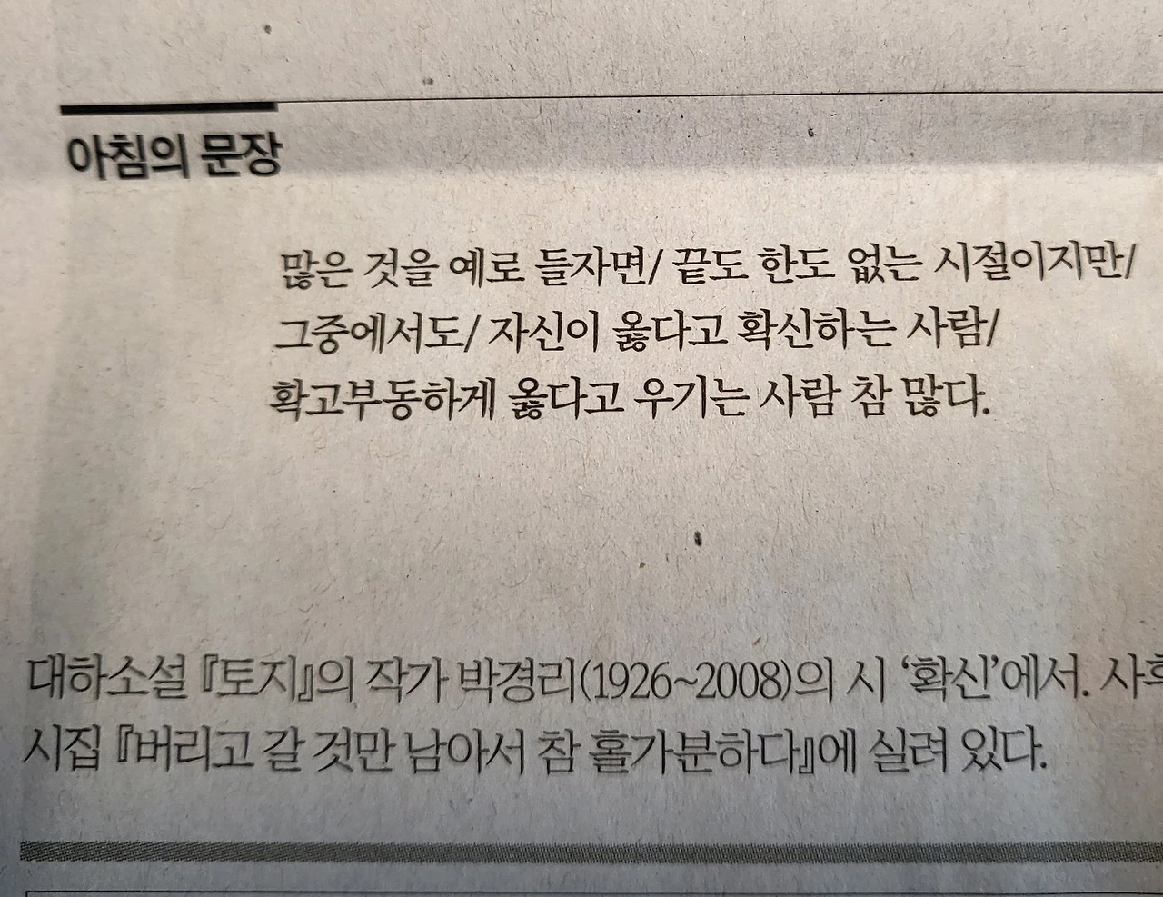 중앙일보 아침의 문장, 2024년 9월 10일, 28면.