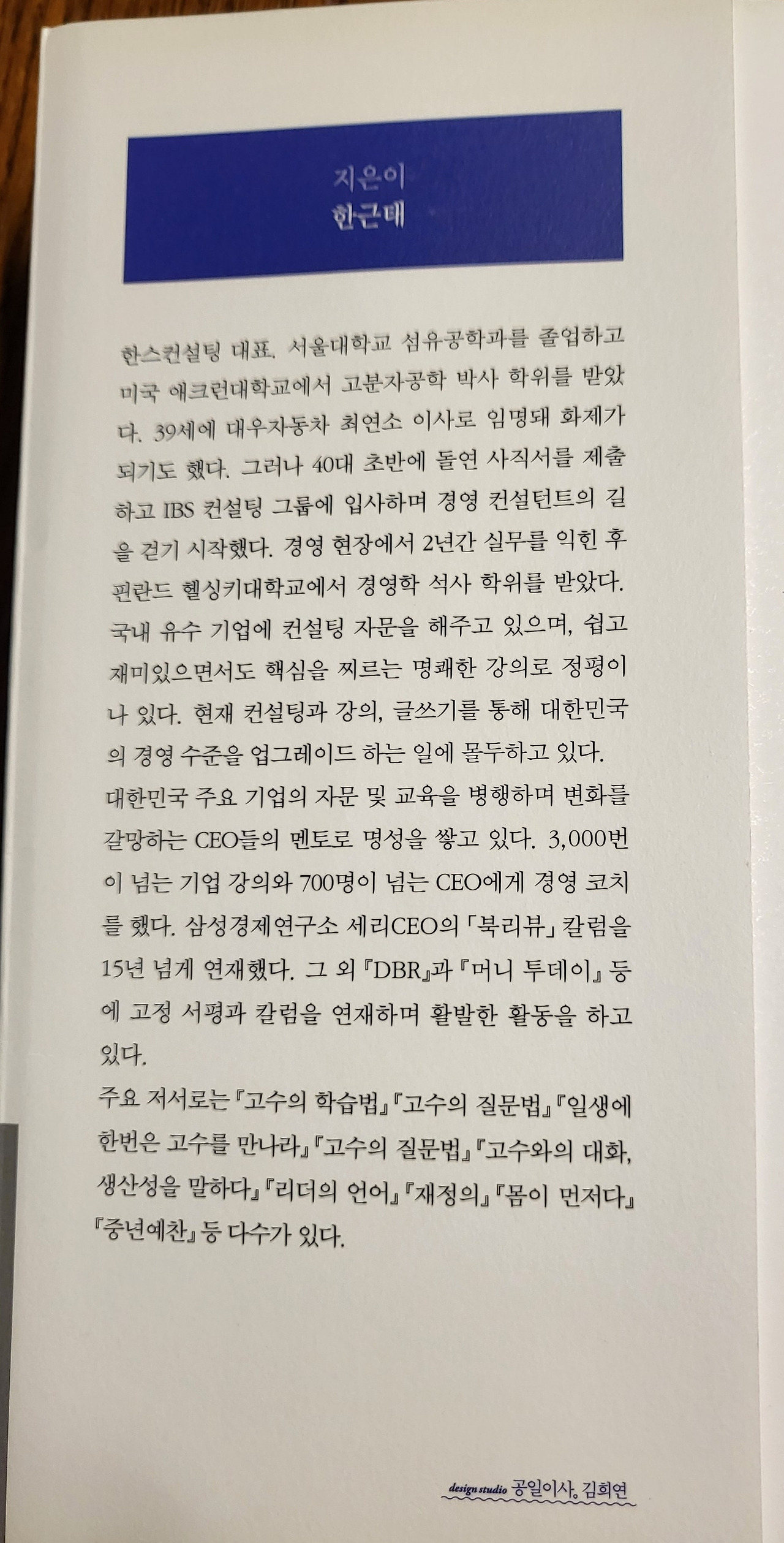 이 책에서 '은서(恩書)'라는 말을 배웠다. 은인처럼 자신에게 은혜를 베풀고 인생을 바꾼 책을 지칭하는 말이다. 나를 변화시킨 '은서(恩書)'는 무엇이었는지 생각해 본다. 나를 변화시킬 '은서(恩書)'는 무엇일지 기대해 본다.