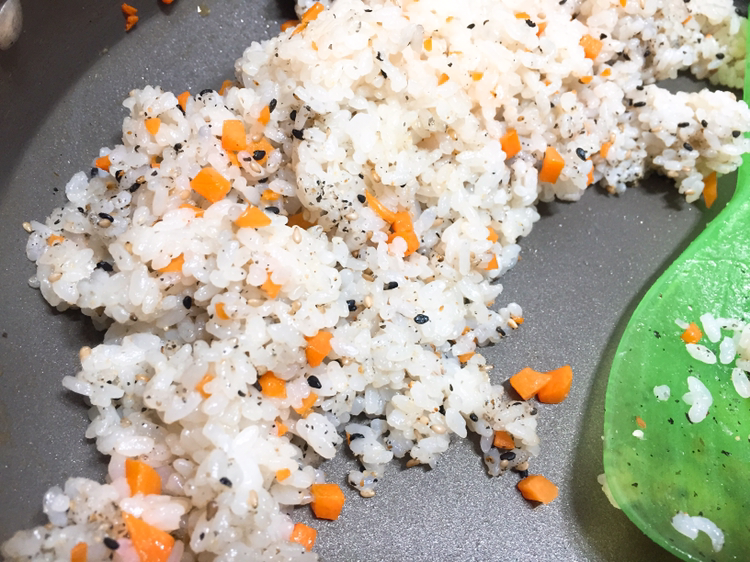 (잘게 자른 단무지는 프라이팬에 살짝 볶아서 밥에 섞어서 알록달록 이쁜 당근 밥으로 김밥 싸는 게 울 엄마 비법이라면 비법!)