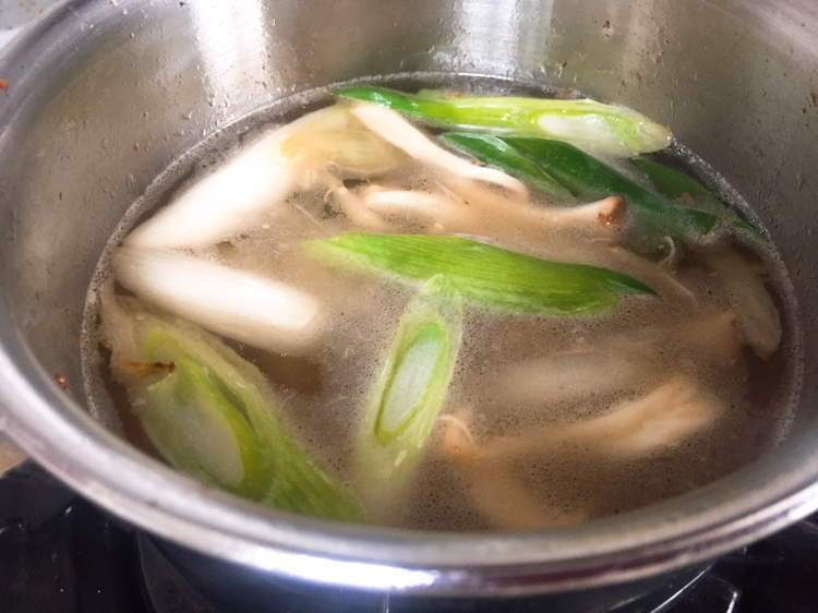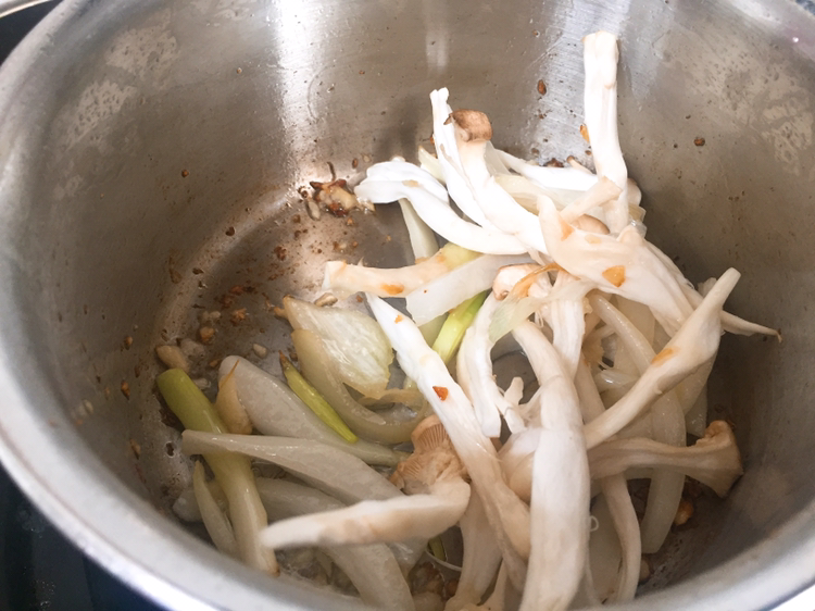 2. 양파, 버섯, 파를 순서대로 넣고 볶는다.