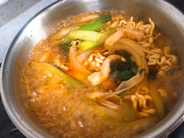 원래 라면 레시피에는 500ML를 넣으라고 되어 있지만 나는 야채를 더 넣었으므로 물도 추가했다.