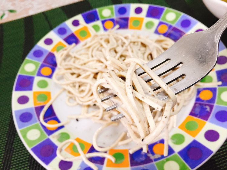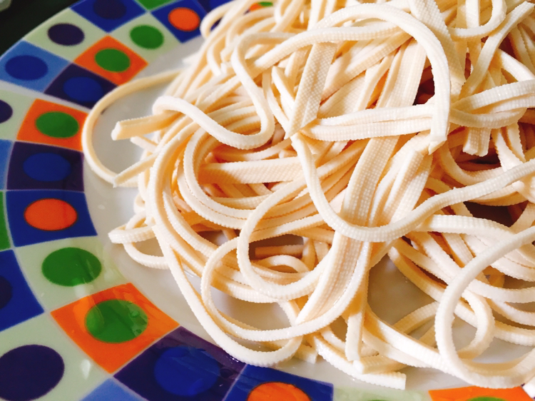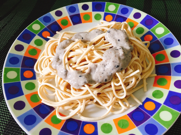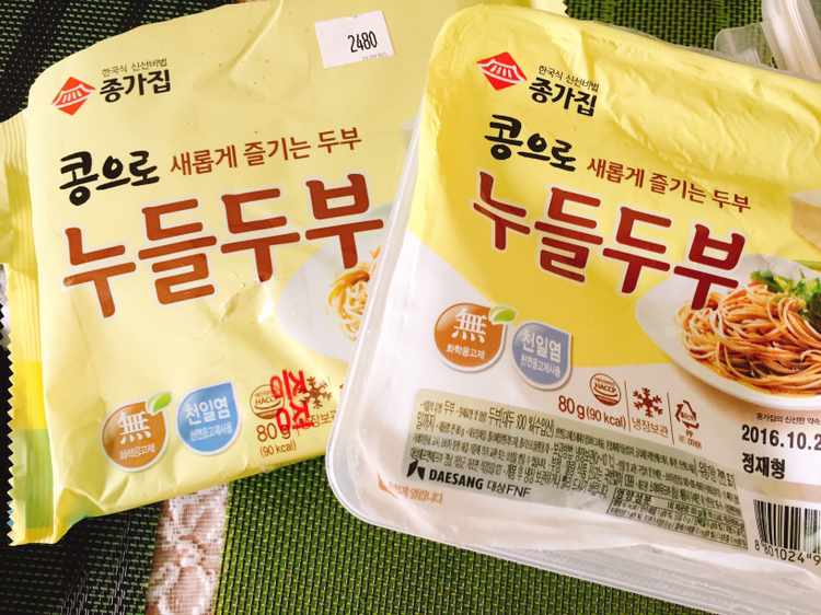 두부국수인지 두부 파스타라고 해야할지 모르겠지만 레시피는 없다싶을 정도다. 물을 따라 버린다. 동봉된 참깨 소스를 뿌려 먹는다. 시중 소스가 나트륨 함량이 높기 때문에 삼분의 일만 넣기로 한다.