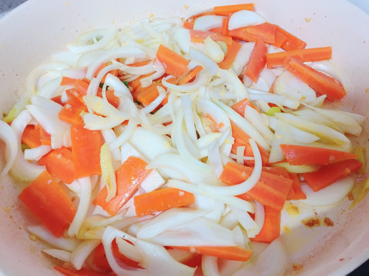 달궈진 팬에 마늘로 약간 향을 내고 야채를 먼저