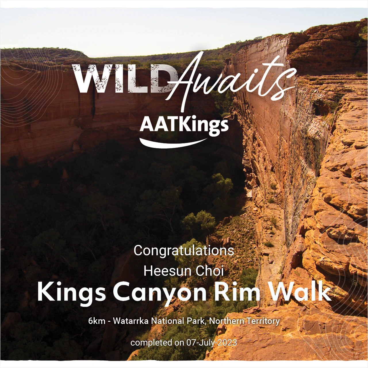 저녁 6시가 다돼서야 에어즈락 리조트 단지에 도착했다. 도착해서 림워크 수료증을 받았는데, 수료증에 내가 사진으로 담지 못한 킹스캐년의 사암절벽이 멋지게 찍혀 있었다..ㅎㅎ 새벽부터 시작한 이 날의 트레킹은 내가 걸었던 트레킹 코스 중에 가장 이국적인 길로 꽤 오랫동안 기억될 것 같다.
