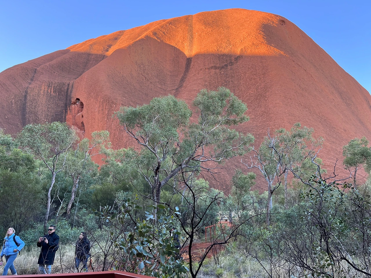 눈칫밥으로 정리해 보자면 울루루는 말도 안 되게 긴 시간 동안 퇴적과 지각운동 그리고 풍화, 침식을 거쳐 지금의 모습이 되었다고 한다. 가까이서 보니 정말 거대했고, 사진으로는 그 스케일이 담기지 않았다. 몇 년 전까지만 해도 울루루 성지 등반이 가능했었는데, 2019년부터 금지됐다고 한다. 성지는 원주민에게 조상들의 영혼이 깃든 성스러운 장소여서 관광 초기부터 원주민들은 성지 등반에 반대했다고 한다. 게다 관광객들의 쓰레기 투기와 노상방뇨로 성지 곳곳이 훼손되면서 등반이 금지됐다고 한다.