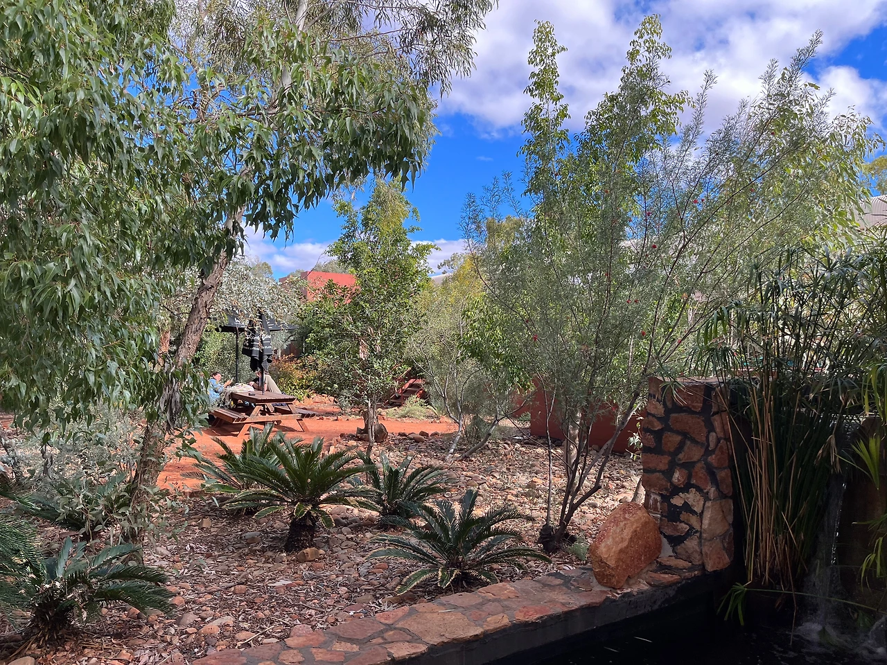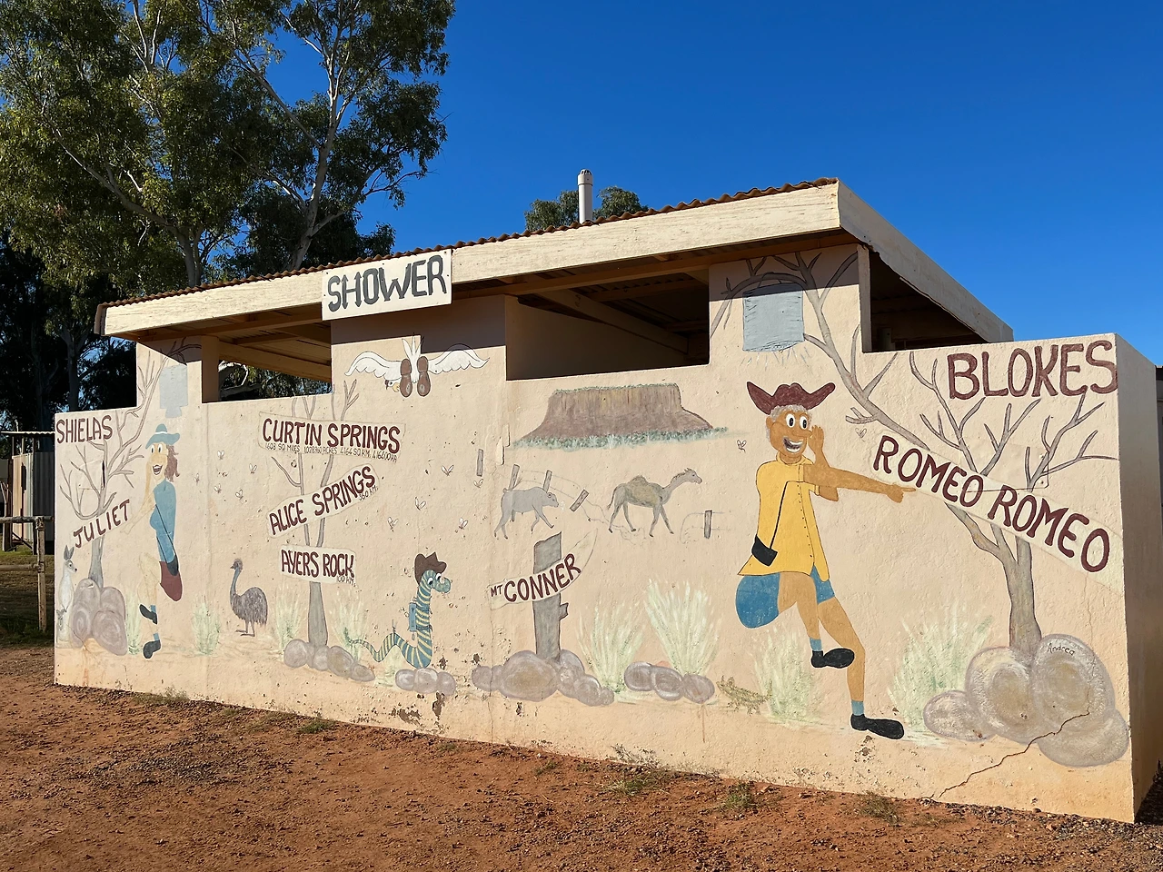 리조트로 돌아가는 길에 컬틴 스프링스 스테이션(Cultin Springs)에 들렸다. 작은 가게와 캠핑사이트가 있는 휴게소였는데, 화장실이 엄청난 충격과 공포였다. 캠핑투어를 했다면 이런 곳에서 씻고 잤어야 했을 텐데, 역시나 캠핑투어를 안 하길 잘했다는 생각이 들었다. 충격과 공포와는 별개로 휴게소 풍경이 이국적이라 한창 구경을 했다.