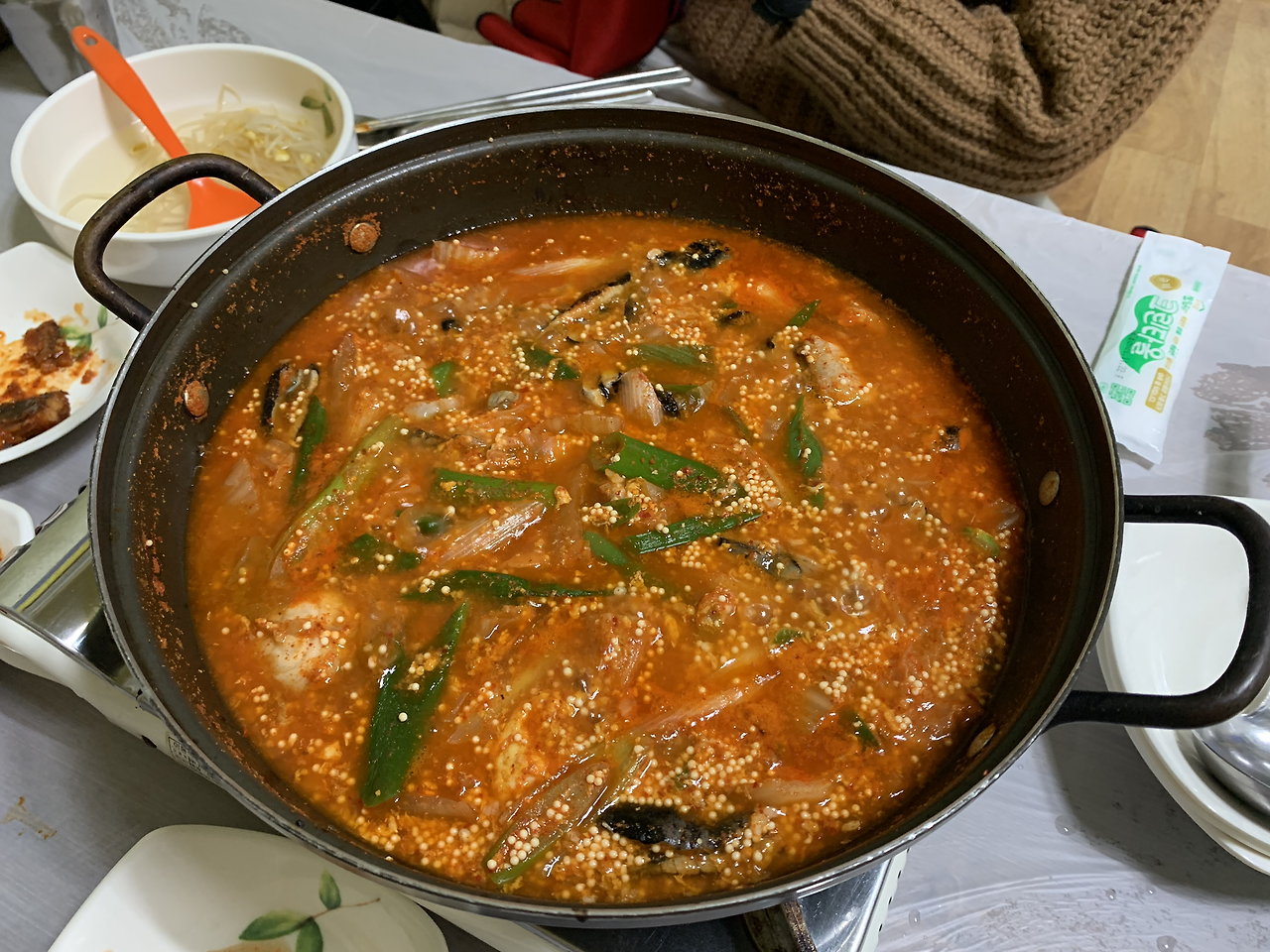 세꼬시와 가자미 튀김을 다 먹고도 뭔가 아쉬움이 남아 도치알탕을 시켰다. 도치알탕은 처음 먹어본 음식인데, 물곰탕의 베이비 버전? 느낌이다. 겨울철이 제철인 생선인데, 식감은 전반적으로 야들야들한데 물곰보다는 덜 흐물흐물하다. 도치의 특징은 알이다. 사진처럼 탕에 알이 수북하다. 알 매니아라면 꼭 먹어봐야 할 음식이다. 묵은지를 베이스로 한 알탕인데, 보는 것과 달리 자극적이지는 않았다. 맑은탕이 아니라 걱정을 많이 했는데, 묵은지 베이스라 끝맛이 은근히 개운했다. 계절마다 찾아가고 싶은 곳이다.