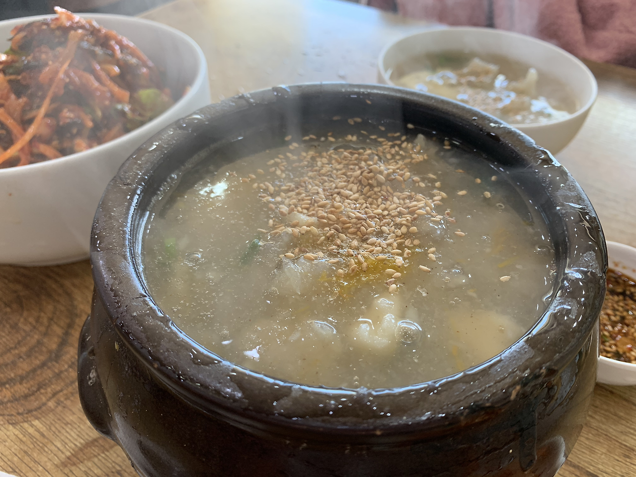 사계절 불문하고 강원도에 가면 늘 먹고 오는 메뉴는 옹심이다. 옹심이는 강원도 아닌 곳에서는 잘 팔지도 않고, 서울까지 포장하는 집도 흔치가 않다. 감자 옹심이는 강원도 향토 음식인데, 감자를 갈아서 새알처럼 만든 수제비다. 원래 옹심이는 옛날 보릿고개 시절 쌀 대신 국에 넣어 먹던 음식이었다고 한다. 여행친구가 이번에 감자바우에 가보고 싶다하여 매번 가던 곳을 안가고 여기로 가보았다. 몇 년 전 식객 허영만의 백반기행에 나왔다고 한다. 방송을 타서 그런지, SNS 맛집인지 평일 점심인데도 관광객들로 붐볐다. 정말 까닥했으면 자리가 없어 못 먹을 뻔 했다.