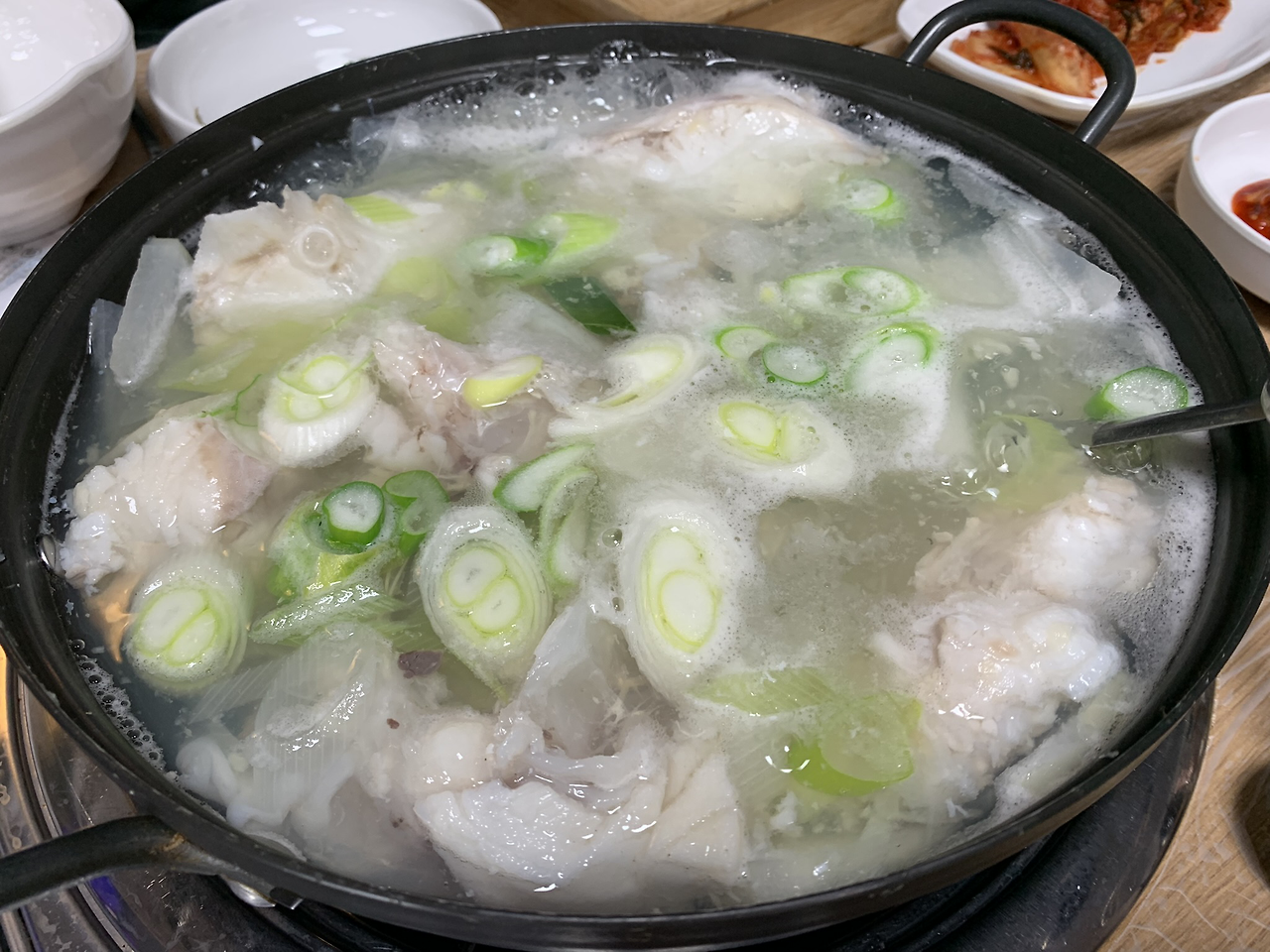나 또한 겨울에 강원도에 가면 꼭 물곰탕을 먹고 온다. 이번에는 매번 가던 식당 말고, 시내에 있는 새로운 식당을 도전해봤다. 가자마자 망설임 없이 물곰 3인분을 시켰다. 가격은 1인분에 25,000원인데, 이 또한 시세에 따라 변동하니 내년 겨울엔 또 오를지도 모르겠다. 맑은 국물에 무와 대파와 함께 끓여나온 물곰탕은 추운 몸을 사르르 녹여줬다. 야들야들하고 사르르 녹는 물곰 맛이 참 일품이었다. 물곰 식감은 덜 쫄깃한 아구 식감도 나고, 젤리같이 흐물흐물한 부분도 있다. 씹는 맛을 즐기는 사람들은 싫어할 수도 있다. 밥은 돌솥밥이 나온다. 가격은 비싸지만 양이 정말 푸짐했다. 처음에 식당에 갔을 때 우리 밖에 없었는데, 먹다보니 동네 분들이 하나 둘 팀을 이루어 오셨다. 동네 맛집인듯 하다..ㅎㅎ 근데 주민분들은 물곰탕보다 대부분 장치조림이나 가자미조림을 많이 시키셨다.