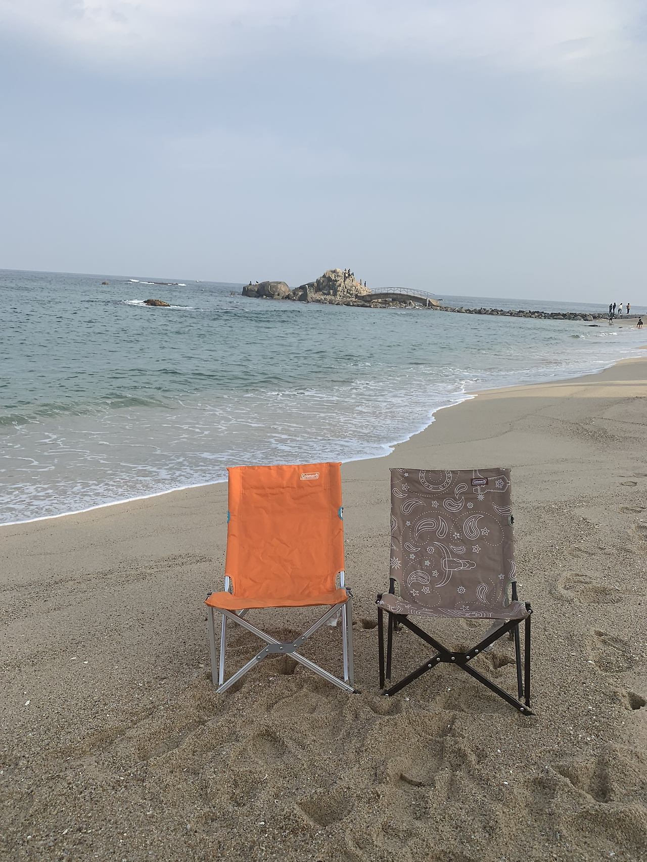 강릉 바우카페를 즐기는 팁이 있다. 바우카페 바로 앞이 사천진 해수욕장인데, 작은 캠핑의자를 챙겨가면 어느 카페 부럽지 않은 커피타임을 즐길 수 있다. 물론 날씨가 도와줘야겠지만.