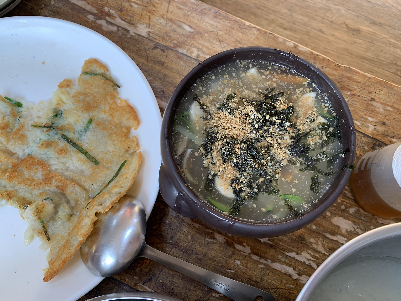 메뉴는 간단하다. 감자 옹심이, 감자전, 회덮밥, 회국수, 회무침이 있다. 옹심이 2인분, 회국수, 감자전을 시켰다. 기대보다는 그냥 그랬다. 이 집 옹심이에는 밀가루 수제비가 같이 나오는데, 그 점이 별로였다. 그냥 감자옹심이만 들어갔다면 더 맛있었을텐데… 회무침류는 왜 같이 메뉴에 구성했을까하는 의문이 들었다. 옹심이 안 좋아하는 사람들을 위해서? 아니면, 자칫 감자요리가 느끼할 수 있어서? 여름철용? 일단 회무침과 옹심이의 조합이 썩 어울리지 않는다고 느껴졌고, 회무침 자체도 굉장히 자극적으로 느껴졌다. 옹심이의 슴슴한 맛을 헤쳐서 손이 잘 안 갔다.