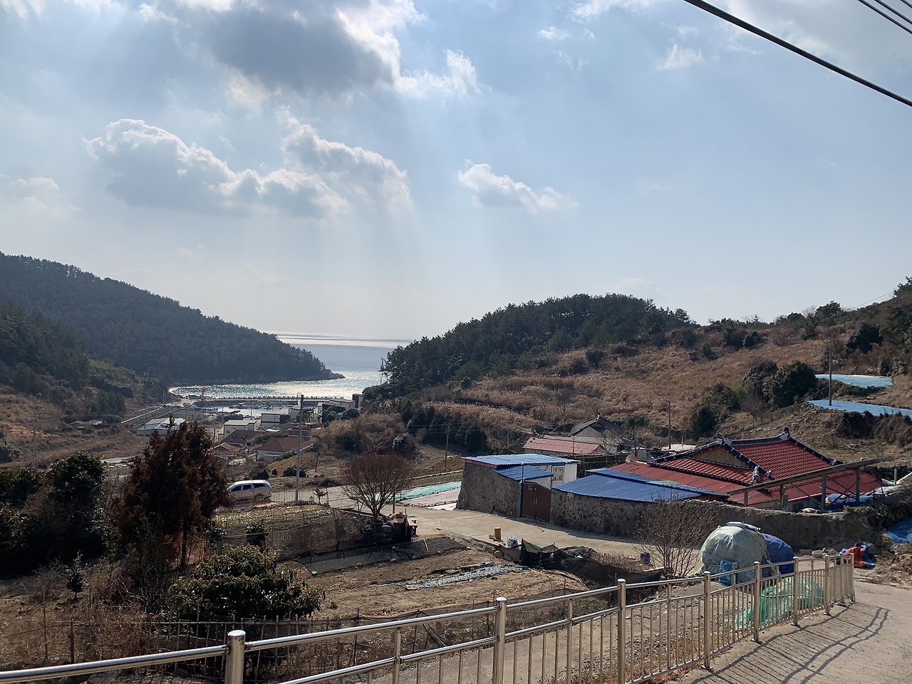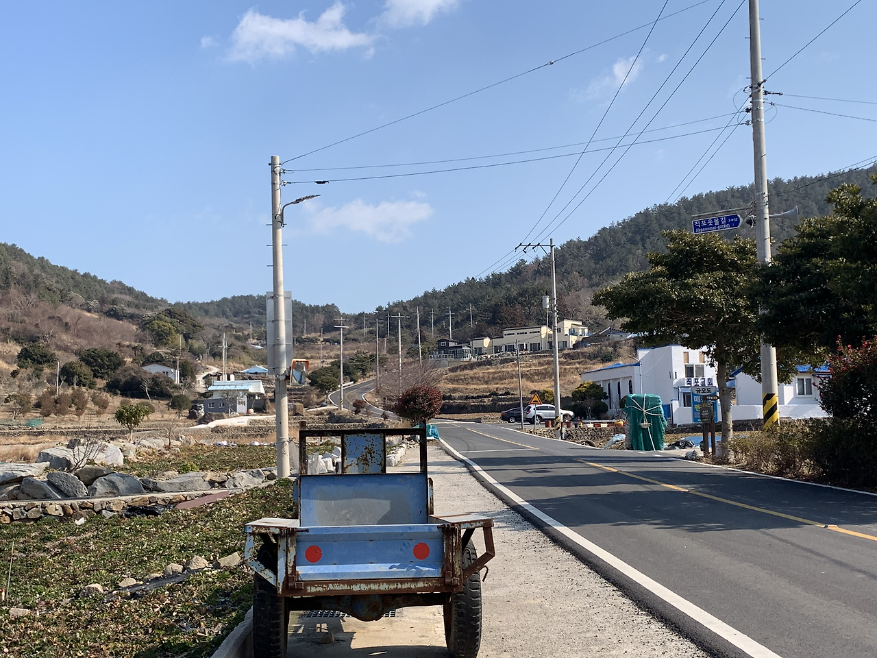 식사 후 비렁길 카페 사장님의 팁대로 큰 길을 따라 차를 주차 해 놓은 학동으로 걸어갔다. 20분? 정도 걸렸다. 바다 끼고 걷는 트래킹 코스도 좋았지만, 섬마을 풍경도 아기자기 정겨운 느낌이 들어 좋았다.