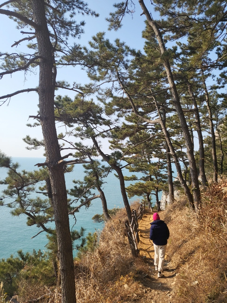 학동에서 시작해 직포에 도착하니 11:55분이었다(10:09에 출발). 3.5 km면 트래킹 치고는 짧은 편이라 더 빨리 도착할 거리긴 한데, 풍경에 감탄하고 사진찍으며 오니 2시간 정도 걸렸다. 사실 매봉전망대 이후부터는 트래킹에 상당히 집중해서 왔다. 초입부터 중반까지는 풍경보는 재미에 거북이처럼 걸었는데, 인간인지라 계속되는 절경에 익숙해지고, 볕이 좋았음에도 해풍을 맞으며 걸으니 급 피곤해서 빨리 종착지에 가고 싶단 생각에 걸음을 재촉하게 되었다.