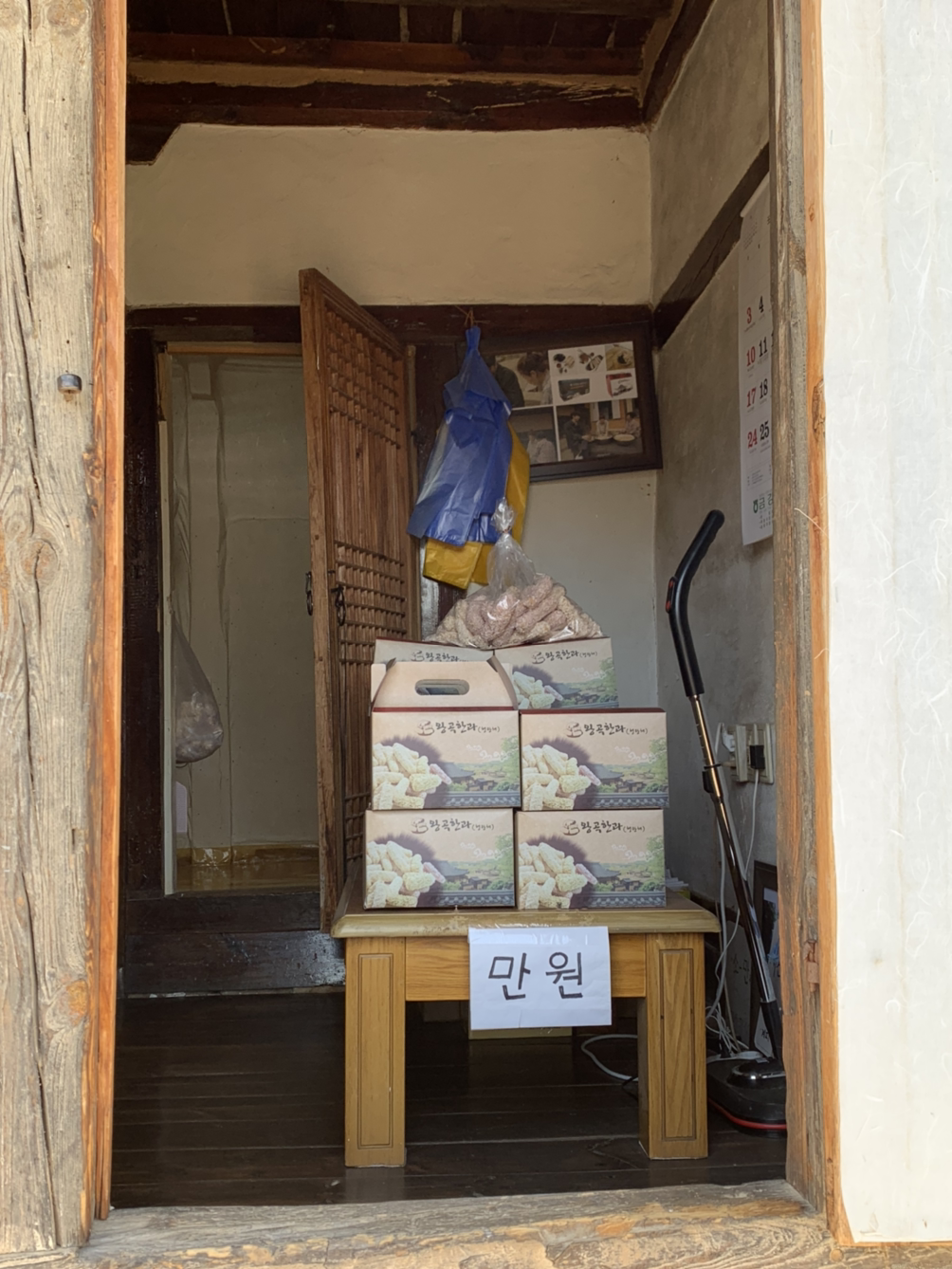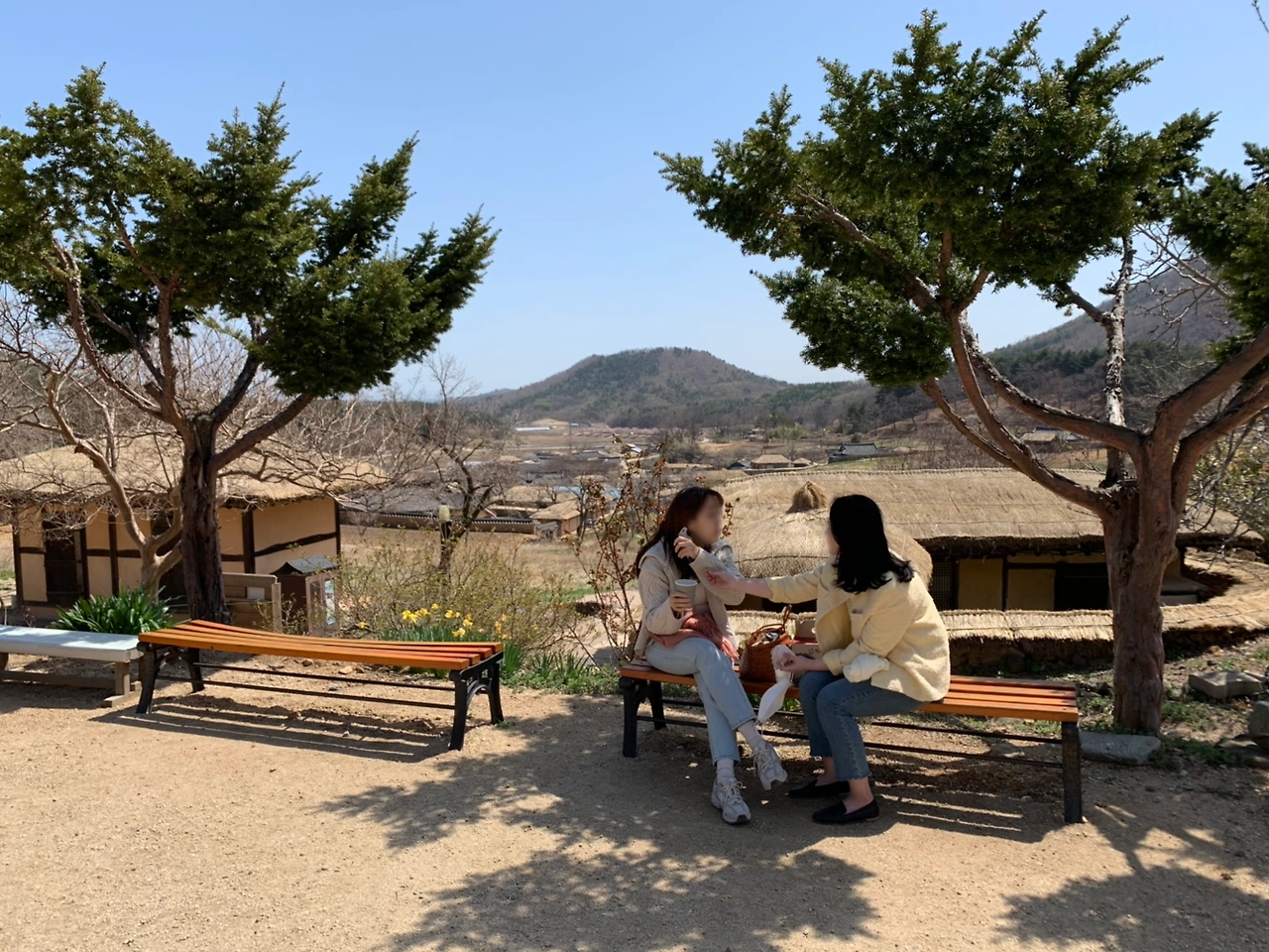 마을 입구로 되돌아가기 전, 왕곡한과에 들렸다. 마을 정상에 위치한 전통한과 집이였다. 한과 한 상자와(10,000원) 수정과를 시켰다. 잠시 숨을 고르기 위해 집 앞마당에 앉아 수정과 타임을 즐겼는데, 그 어느 카페보다 좋았다. 날씨도 좋았고, 마을 정상에서 내려다 보는 마을 풍경은 아무 카페에서나 즐길 수 없는 멋진 뷰였다. 한과도 정말 맛있었다. 한과 특유의 엿기름 쩐내 때문에 안 좋아하는데, 왕곡한과는 기름내도 안 나고 적당히 달아서 맛있게 먹었다. 여름이면 왕곡마을에 연꽃이 가득하다던데, 여름의 왕곡마을을 기대해본다.