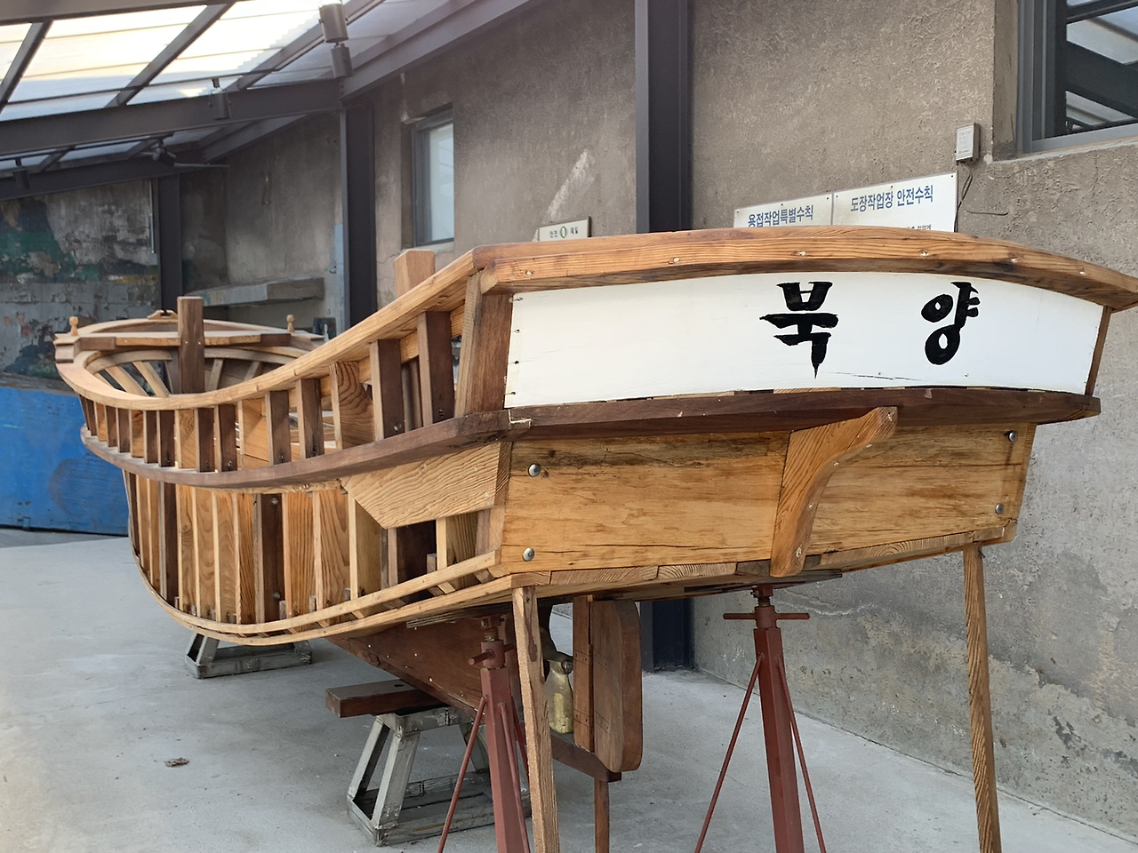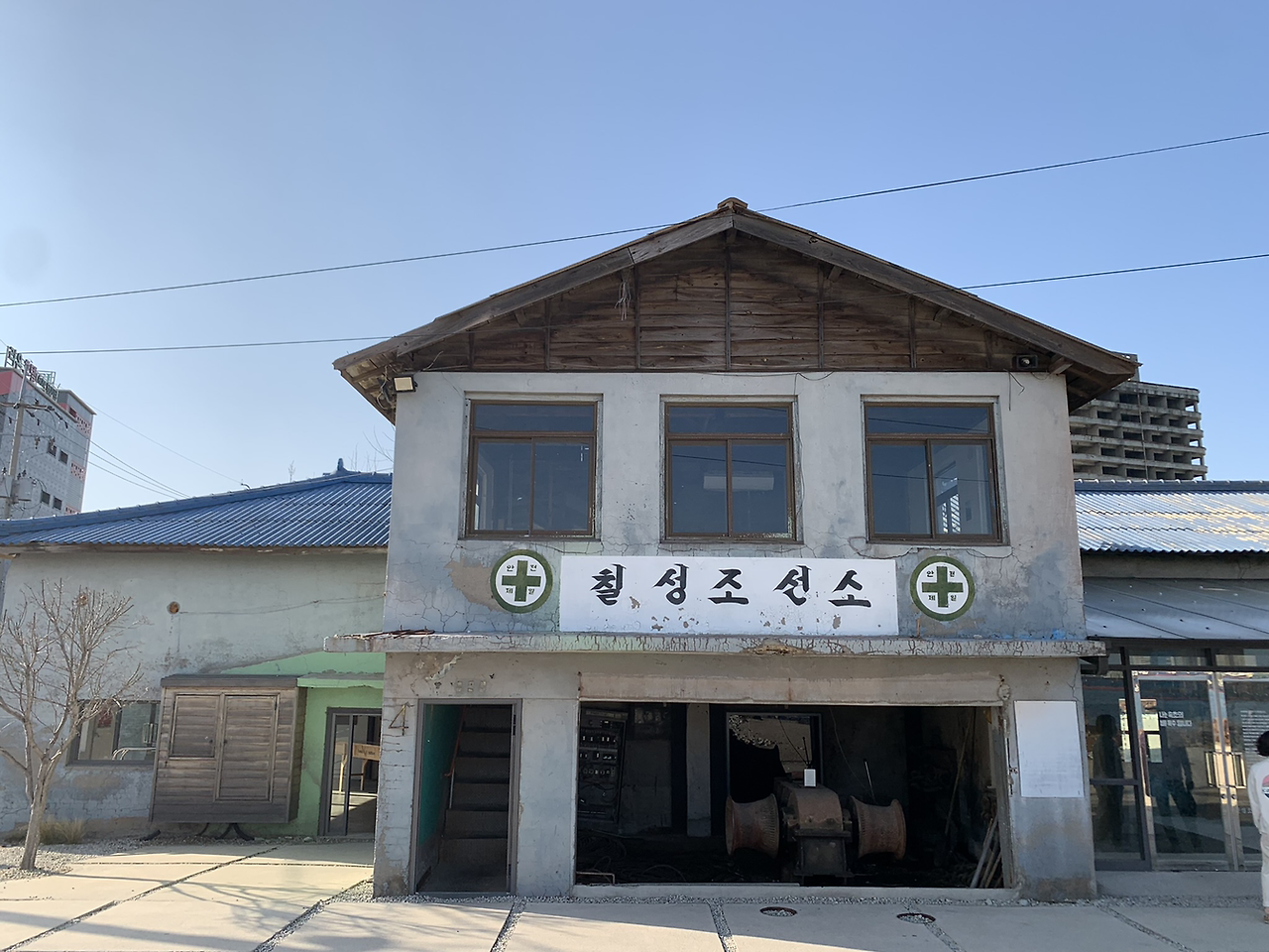 조선소 안으로 들어가면 옛 칠성조선소 건물과 칠성조선소의 협력사인 협성기계의 작업장이 나온다. 이곳에서는 칠성조선소의 마지막 목선이 전시되고 있다. 목선은 선박제작에서 나무를 다루는 기술로 나무 틈 사이로 물이 세지 않게 하기 위해 나무를 다듬는 작업에 해당한다. 현재는 새로운 기술로 대체되었지만 과거에는 목수들이 직접 제작하였다. 조선소에 전시되어 있는 마지막 목선은 속초에서 배 목수로 활동하셨던 전용원 목수님이 20년 만에 재현해본 목선이다. 조선소의 목선은 마지막이겠지만, 조선소는 자기만의 방식으로 계속해서 사람들과 소통하고 있다. 칠성조선소에는 일반 카페가 주지 못하는 조선소만의 분위기가 있다. 아무리 멋지게 인테리를 한다고 해도 칠성조선소에 묻어있는 그 세월과 추억을 보여주진 못할 테니까. 그래서인지 스토리 덕후인 나에게 칠성조선소란 공간은 그 어느 카페보다 좋았다.