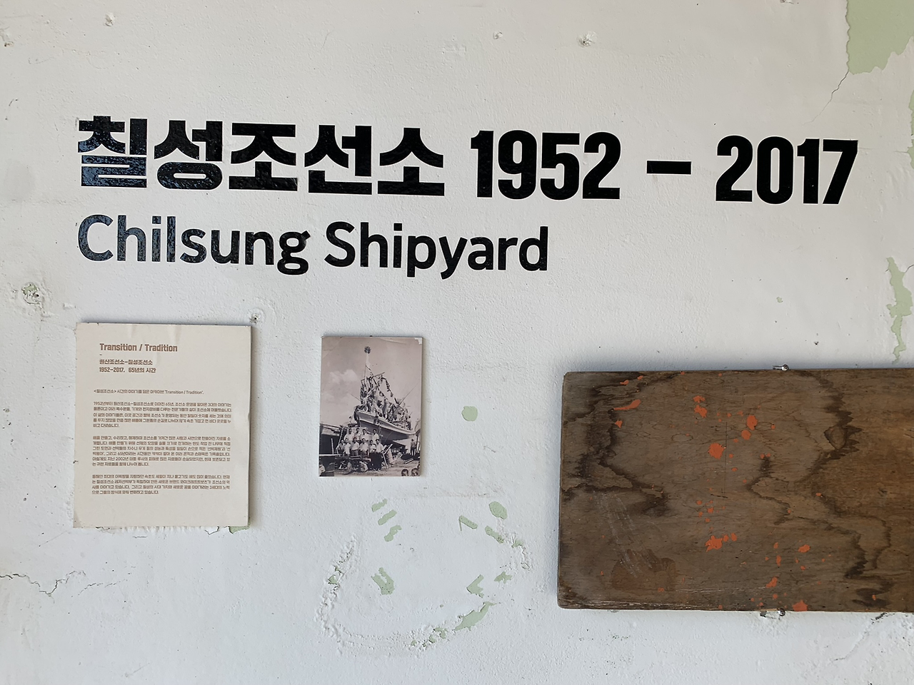 칠성조선소의 입구에는 조선소의 65년 역사가 담긴 미니박물관이 있다. 1952년부터의 사진자료 외에도 선박제작에서 사용된 선박제원과 선박용어들이 전시되고 있다. 사실 더 많은 자료가 있었는데, 2002년 태풍 피해로 많은 자료들이 손실되었다고 한다.