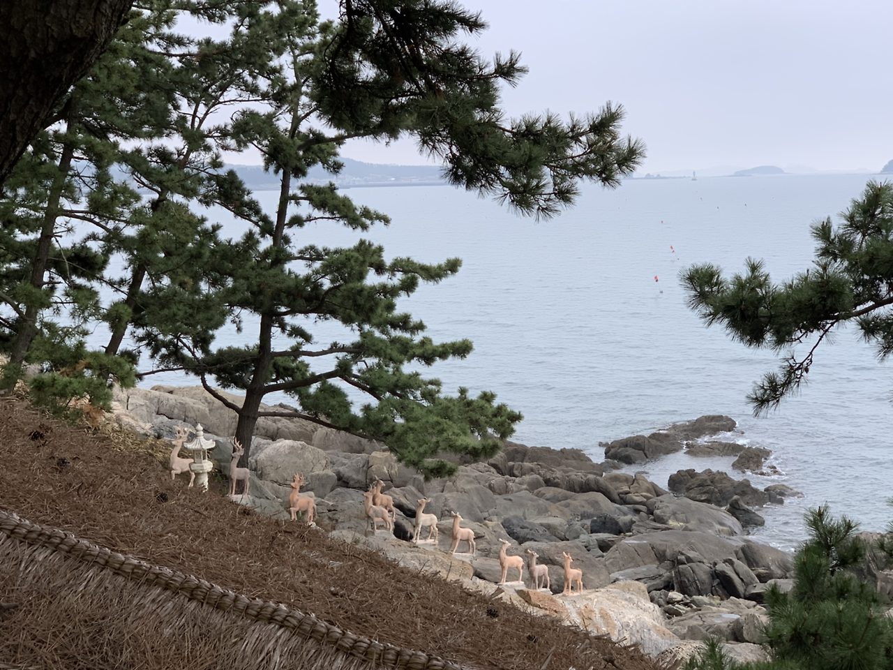 회랑길을 따라 걷다 보면 옆으로 해변 연못들을 만날 수 있는데, 정원의 미적 요소로 조성된 연못은 바다와는 또 다른 아기자기한 풍경을 보여준다. 회랑길을 걷다 보면 중간중간 바다와 맞닿는 해변 테라스로 내려가는 길들이 나있다. 바다를 풍경삼아 독서도 하고, 글도 쓰는 곳으로 만들어둔 공간이라고 한다. 그리고 정원 곳곳에는 홍상화 선생님의 수집품들이 자리하고 있다.