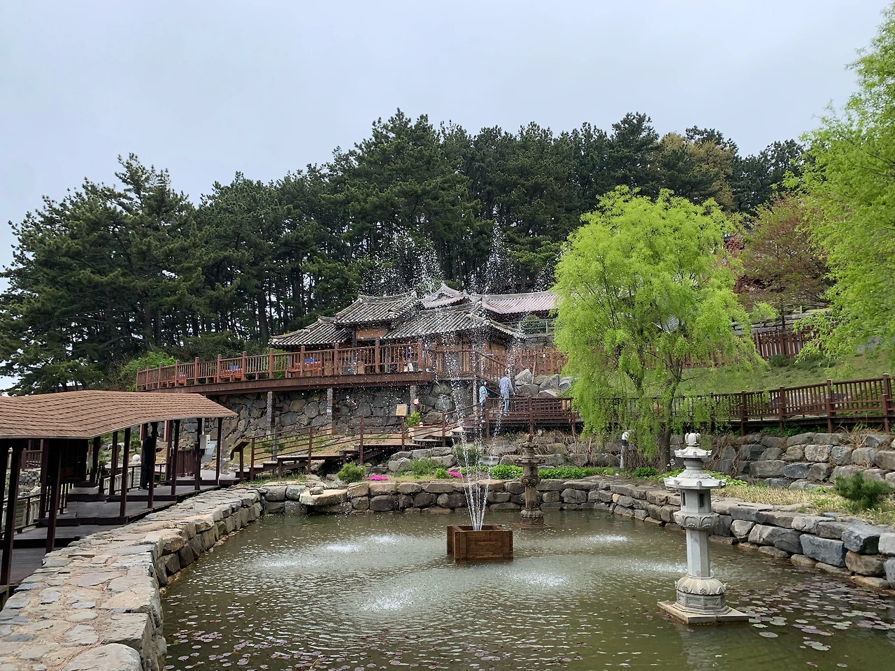 개인적으로 상화원의 하이라이트는 한옥 정원이라는 생각이 든다. 한국정원은 보존이 잘 안 되는 한옥을 구입해 이건 하고, 복원하여 조성된 정원이다. 한옥 정원에는 일반 평민이 사용하던 한옥부터 관리들이 사용하던 한옥까지 다양한 형태의 한옥들이 있다. 고창군 홍씨 가옥 안채, 홍성군 오홍천씨 가옥, 청양군 이대청 씨 가옥, 고창군 홍씨 가옥 문간채, 보령시 상시 가옥, 의곡당, 고창읍성 관청, 낙안읍성 동헌, 해미읍성 객사 등이 한옥 정원에 자리하고 있다. 쓰러져가던 한옥들이 대부분이었기에 한옥 구입은 큰돈이 들지 않았는데, 한옥 이건 비용에 오히려 몇 억씩 들어갔다고 한다. 한옥 자체가 주는 멋이 있는데, 한옥 뒤에 흐르는 폭포와 우거진 해송, 반대편에 드넓게 펼쳐친 바다 풍경, 그리고 아기자기한 정자와 연못이 어우러져 정말 아름다운 풍경을 감상할 수 있었다. 현재는 코로나로 폐쇄 중이지만, 이 한옥들은 정원 관람객들이 차를 마실 수 있는 공간으로 개방되어 왔다. 정말 한옥 안팎에서 한옥의 아름다움을 온전히 느낄 수 있는 공간이다. 보통 한옥 관람을 가면 내부는 출입금지인 경우가 많은데, 다도의 공간으로 한옥을 오픈한 건 정말 대담한 결정이라고 생각한다.