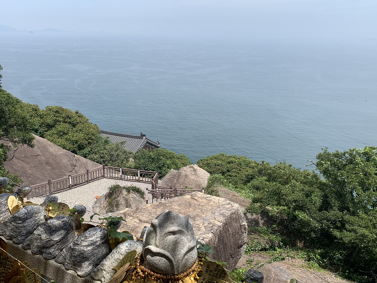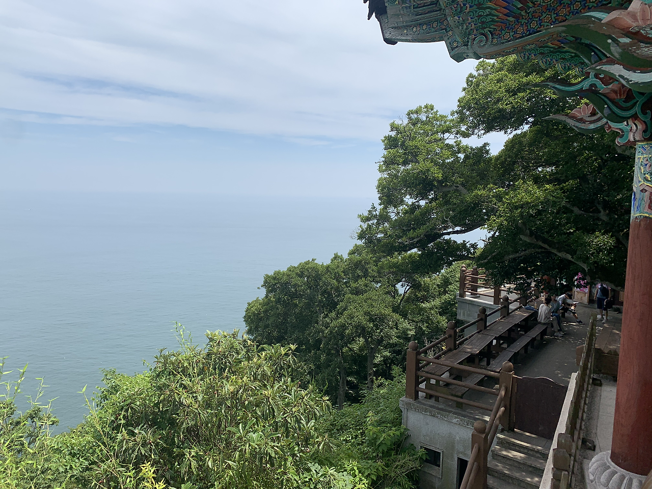 향일암에 오르려면 바위틈으로 난 해탈문을 들어가야 한다. 마치 길이 아닌 것 같지만, 그 길이 맞다ㅎㅎ. 무더운 여름날이었는데도 바위 속은 냉장고 같이 시원함이 느껴졌다. 바위틈을 지나 계단을 오르면 향일암의 중심 법당인 대웅전이 나온다. 여기서 바라보는 바다 뷰도 참 멋지다. 하지만 향일암의 하이라이트는 관음전에 있다. 대웅전에서 조금만 더 올라가면 관음전이 나오는데, 관음전에서 바라보는 바다 뷰가 정말 장관이다. 관음전에는 조용히 기도를 드리시는 불교신자들이 늘 있어 조용히 구경할 필요가 있다.