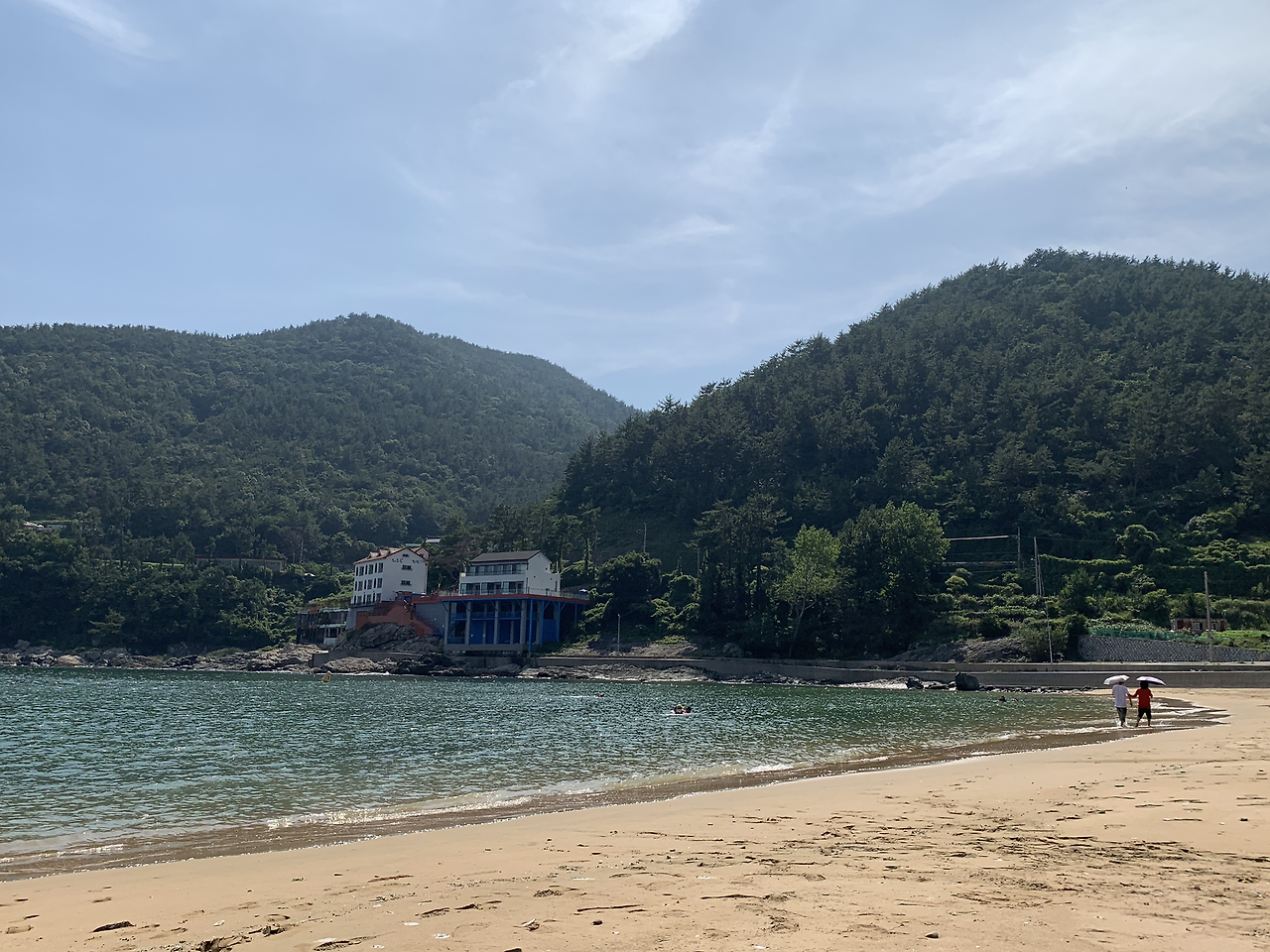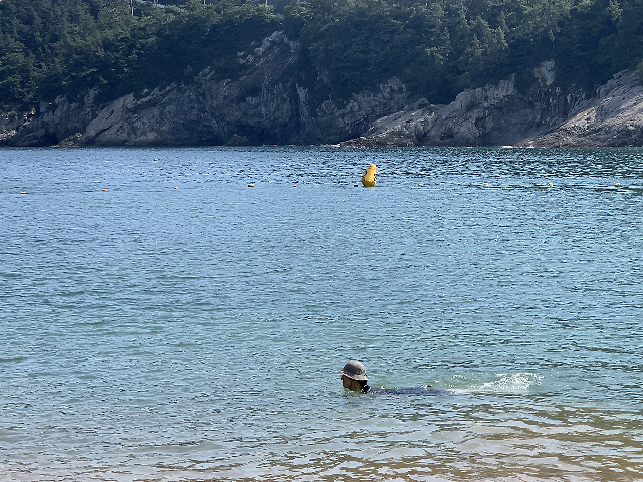 갈아입을 옷을 가져오질 않아 바닷물에 무릎까지만 담그며 아쉬워하고 있는데, 친구가 갑자기 입수를 했다. 가만히 바라보며 부러워할 수만은 없어, 뒷일은 생각 안 하고 나도 바다에 풍덩 담갔다. 어찌나 시원하던지..ㅎㅎ 물도 맑고, 수심도 적당해 수영하기 딱 좋은 해수욕장이었다. 항상 락스 물에서만 수영하길 좋아했는데, 이 날 바다수영의 재미를 알았다. 가만히 서 있기만 해도 땀이 나던 날인데 바다에 들어가니 얼마나 시원한지 모른다. 그리고 뷰가 얼마나 멋지던지.. 산과 하늘을 보며 수영하는 재미가 쏠쏠했다. 이 날 이후, 우리는 해수욕장 도장 찍기를 하며 바다수영을 했다는… 해수욕을 좋아하는 여행객이라면 향일암 다녀오는 길에 더위를 식히고 가기 좋은 곳이다.