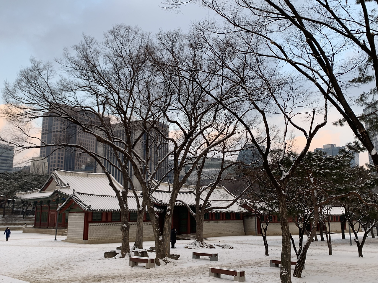 오전부터 눈이 내려서 덕수궁 구경을 다녀왔다. 날씨가 안 좋으니 사람이 없을 꺼라고 생각했는데.. 그 어느 때보다 많았다. 다들 나처럼 눈구경을 나왔나보다. 가는 길에도, 구경하는 중에도, 함박눈이 계속 내려서 춥기도 했지만, 그만큼 더 기억에 남을 만한 덕수궁을 보고 왔다.