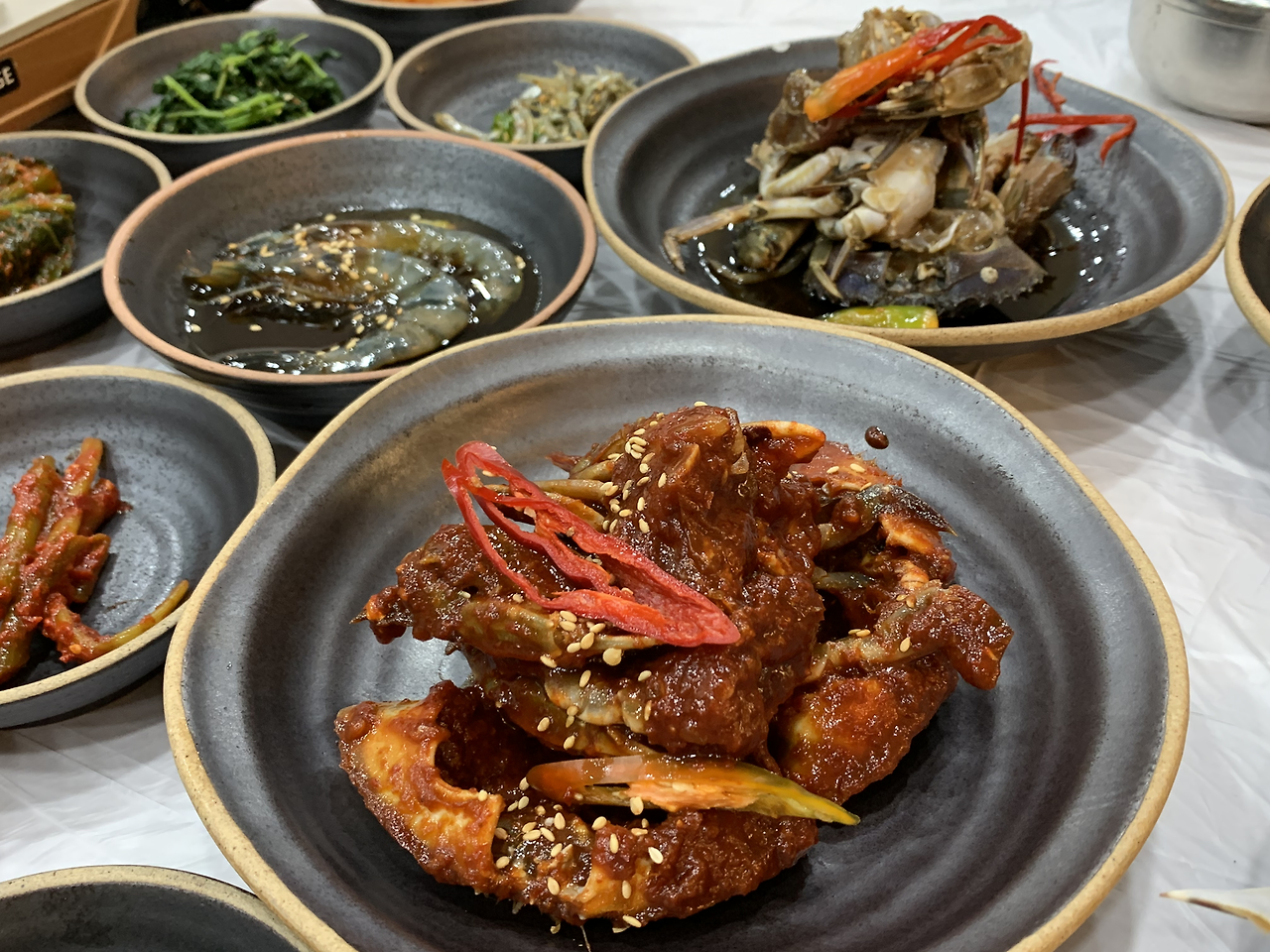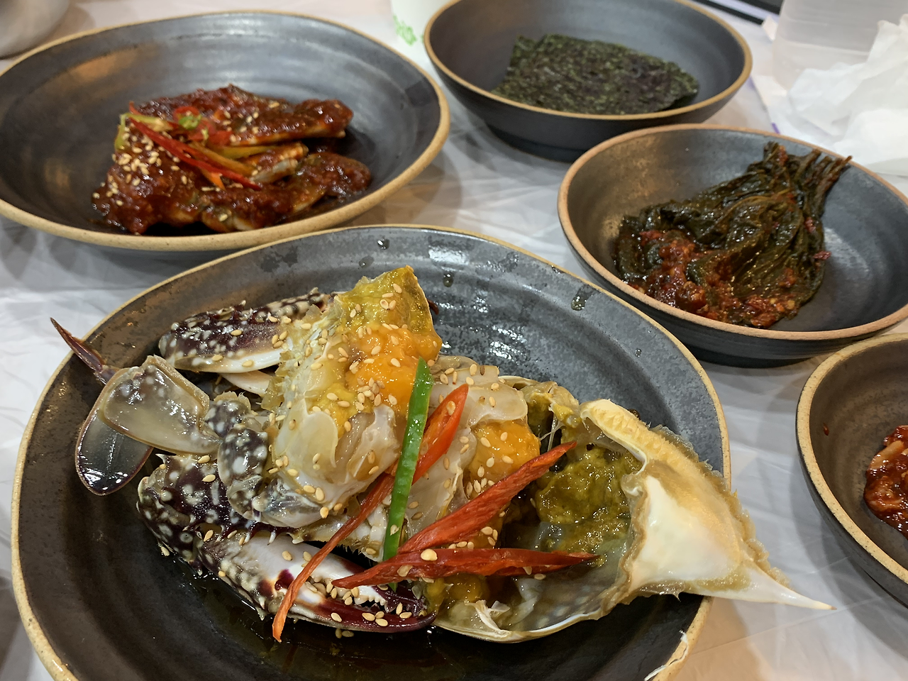 여수에 올 때마다 가장 고민하는 게 어느 집 게장을 먹을 것인가다. 돌게장이냐 꽃게장이냐. 가본 집이냐, 새로운 집이냐. 고민을 하다 친구가 추천한 정다운 식당에 게장을 파는 걸 보고 이리로 갔다. 정다운 식당은 물메기탕으로 허영만의 백반기행에도 나온 집이다. 허영만 추천식당과 잘 맞는 편이라 걱정 없이 들어갔다. 꽃게 삼총사(꽃게탕+암꽃 게장+양념꽃게장)(30,000원) 정식과 돌게 삼총사(돌게탕+돌게장+돌게 양념게장)(15,000원)을 각각 하나씩 시켰다. 꽃게와 돌게 삼총사는 반찬이나 다른 구성은 다 같고, 게장이 돌게냐 꽃게냐의 차이다. 꽃게장과 돌게장을 동시에 맛볼 수 있어서 좋았다.