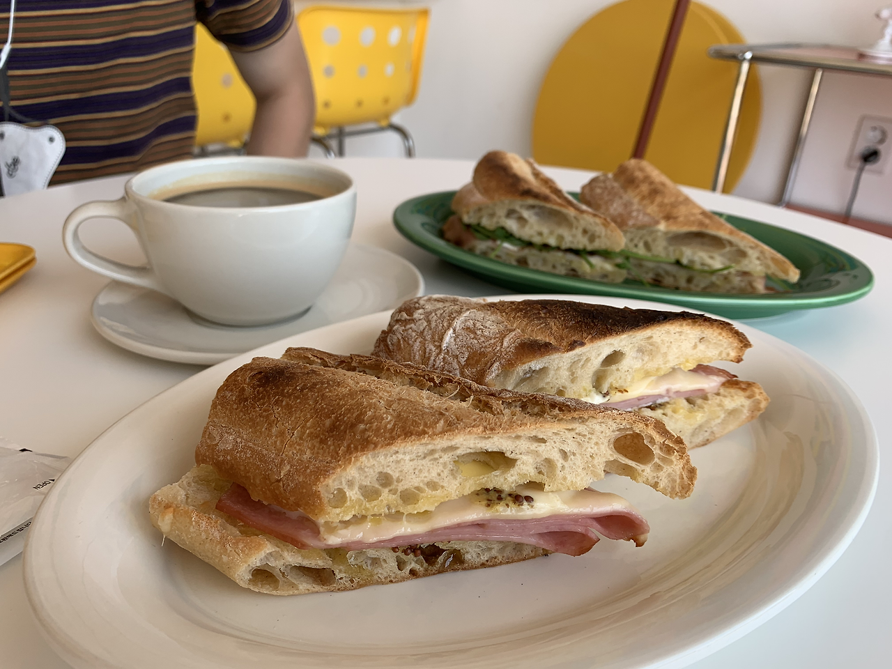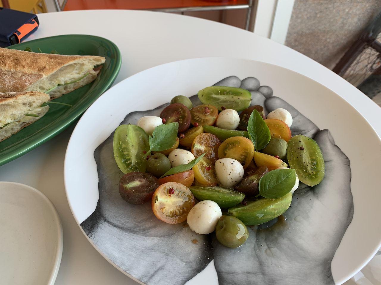식사를 위해 우선 샌드위치 두 개와 샐러드를 주문했다. 잠봉뵈르와 루꼴라 프로슈토, 카프레제 샐러드를 시켰다. 맛은 다 괜찮았다. 맛있는데, 자주 먹어 상상할 수 있는 맛이다. 재밌는 건 샐러드를 시켰더니 가게 앞에서 키우시는 바질 화분에서 바질을 직접 따서 만들어 주신다. 장마와 더위를 이기지 못하고 가버린 우리 집 바질이 생각났다. 정말이지 한국은 허브 농사를 짓기에는 기후가 안 맞다. 내년엔 정말로 농사를 짓지 말아야겠다 또 한 번 다짐했다.