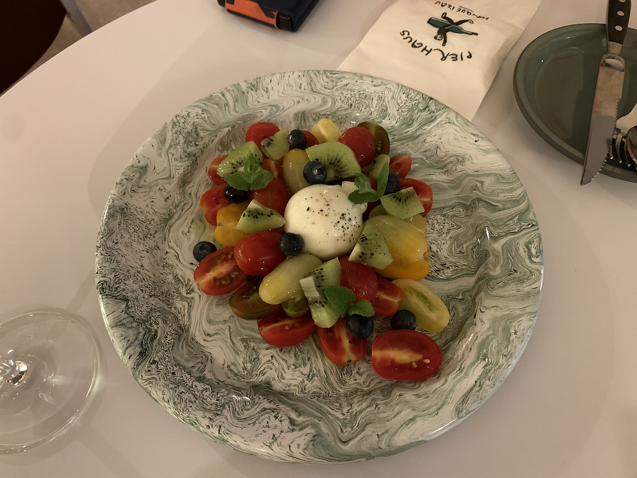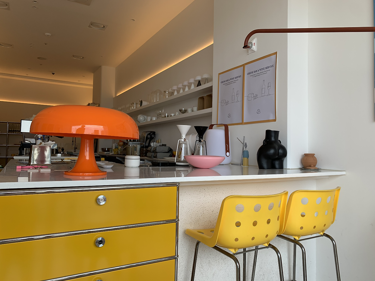 여수의 신도시인 웅천에 위치한 커피 앤 와인 바다. 스스로를 스페셜티 커피와 내추럴 와인을 전문적으로 판매한다고 소개하고 있다. 일단 분위기가 정말 힙하다. 여수 MZ 세대들의 아지트 같았다. 늦은 저녁에 갔는데 다들 커피를 많이 마시고 있었고, 가게 인테리어를 배경으로 사진 찍기 바빠 보였다. 그럴 만도 한 게 구석구석 안 예쁜 구석이 없는 가게였다. 벽면에 포스터 액자들이 많았는데, 독일에서 열린 호크니 전시 포스터도 있었다. 마침 가게 이름도 Pierhouse가 아닌 Pierhaus(haus는 독일어로 집이란 뜻)여서 사장님이 독일과 인연이 있나 하는 궁금증이 들었다. 추가 주문을 할 때 슬쩍 물어봤는데, 사장님은 미국에서 디자인 공부를 하셨다고 한다. 가게 오픈할 때 한참 독일 바우하우스(Bauhaus)*에 빠져 계셔서 가게 이름이 피어haus가 되었다고 한다. 어쩐지 가게 인테리어가 정말 멋지더라니. 아마 냅킨 디자인 또한 사장님이 직접 하신 게 아닐까 하는 생각이 든다.