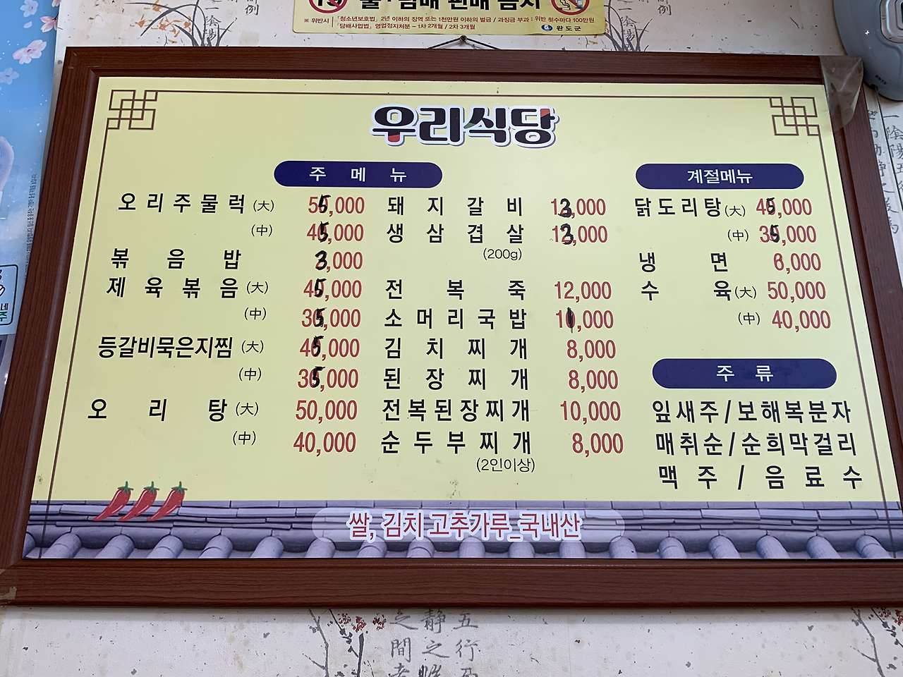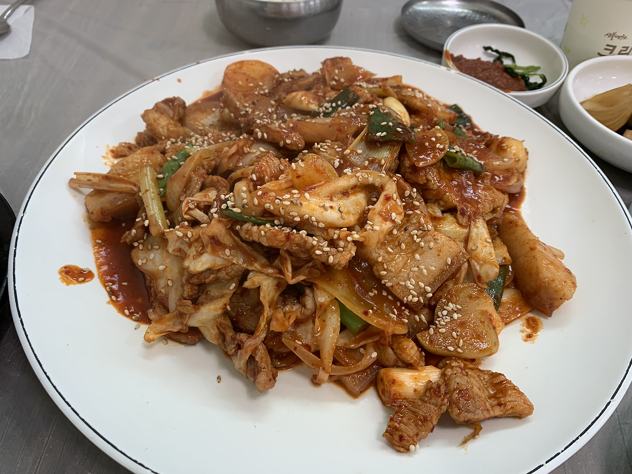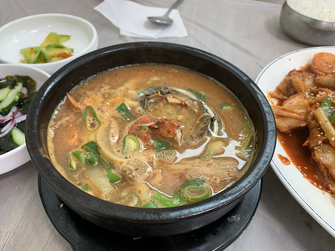 이 식당은 섬에 머무는 동안 갈까 말까를 10번 이상 고민한 집이다. 검색포탈에서 위생의 문제가 지적되어 있어 망설여졌는데, 동네 주민분들에게 괜찮을 식당을 물어보면 모두가 입을 모아 우리식당을 말했다. 찜찜한 마음을 가지고 점심식사를 하러 갔다. 메뉴는 굉장히 다양하다. 고민 끝에 전복 된장찌개와 제육볶음 중자를 시켰다. 가격은 만만치 않고, 공기밥도 추가 주문을 해야 한다. 음.. 굳이 길게 얘기하고 싶은 식당은 아니다. 점심시간 우리 식당은 섬에서 일하시는 분들로 바글바글했지만, 내 입맛에는 와닿지 않았다. 굉장히 투박한 맛이었다. 그렇다고 재료가 신선한 것도 아니었고. 몇몇 반찬은 요리한 지가 오래됐는지 군내가 났다. 그런데 가격은 서울 백반집의 두 배이니.. 유쾌한 식사는 아니었다. 생존을 위한 식사였다고 나를 위로할 수밖에.