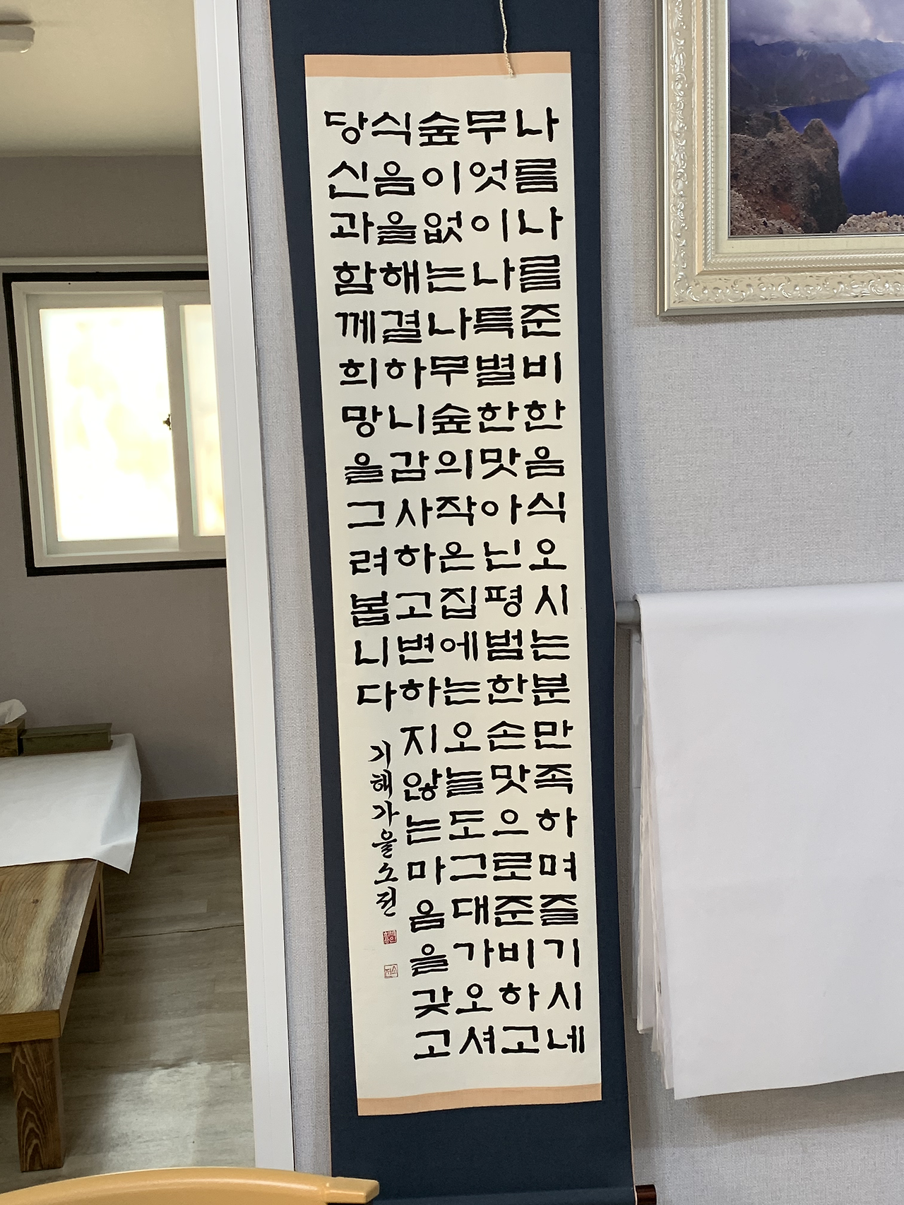 나름나름 준비한 음식 오시는 분 만족하며 즐기시네. 무엇이나 특별한 맛 아닌 평범한 손맛으로 준비하고 숲이 없는 나무숲의 작은 집에는 오늘도 그래다 오셔 식음을 해결하니 감사하고 변하지 않는 마음을 갖고 당신과 함께 희망을 그려봅니다. - 기해가을소전.