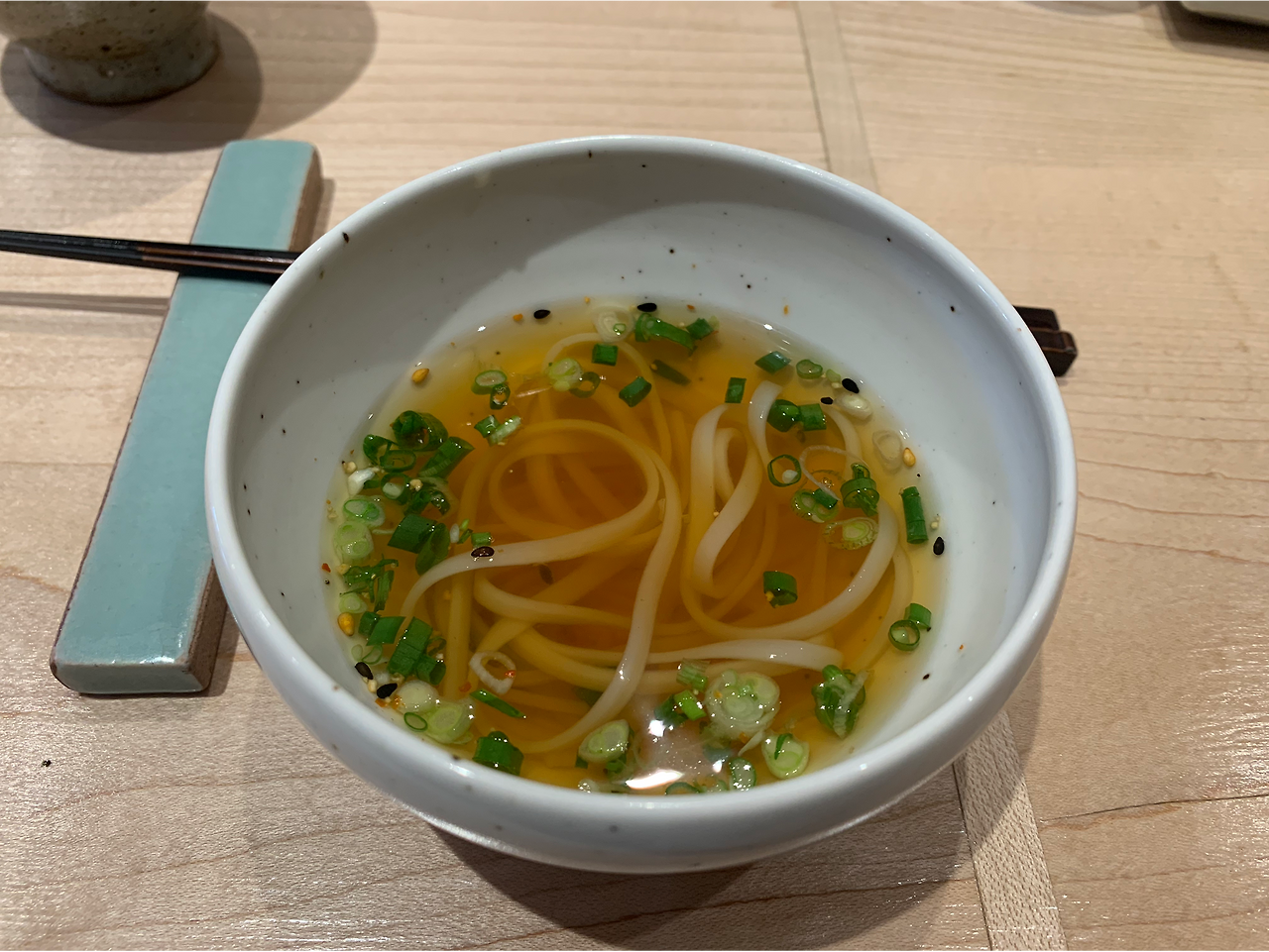 식사로는 얇은 면이 특징인 이나니와 우동, 새우살로 밀가루 없이 구운 계란, 후토마키가 나왔다. 다 먹고 나니 정말 배가 불렀다..