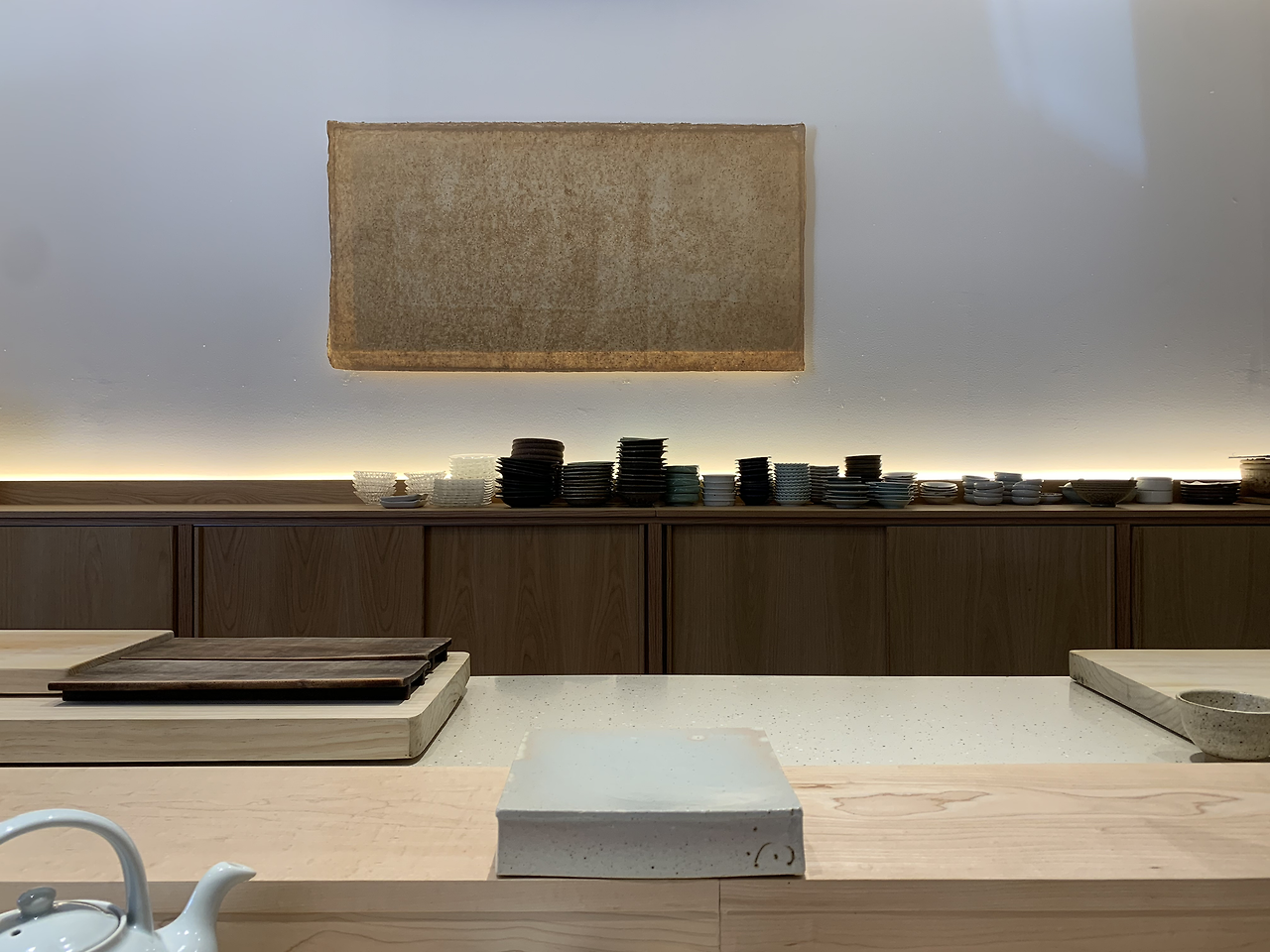 강원도 스시맛집을 찾다가 우연히 발견한 소중한 맛집이다. 닷지테이블 10석으로 예약제로만 진행하는 곳으로, 하루에 런치 2타임(12시, 1시 반), 디너 2타임(5시 50분, 7시 40분)으로 딱 4타임만 운영을 한다. 속초에 도착하자마자 예약을 시도했는데, 다행히 런치 좌석이 남아있었다. 예약 당일에 보니 평일인데도 닷지는 만석이었다. 하마터면 못 먹을 뻔한.. 주말은 예약이 쉽지 않을 듯하다. 오마카세 특성상 적은 가격이 아니고, 강원도에서는 첫 오마카세라(첫 스시이기도 한) 기대만큼 걱정도 컸다. 일단 식당의 첫인상이 단아해서 마음에 들었다. 고요한 분위기에 정갈한 인테리어도 맘에 들었다.