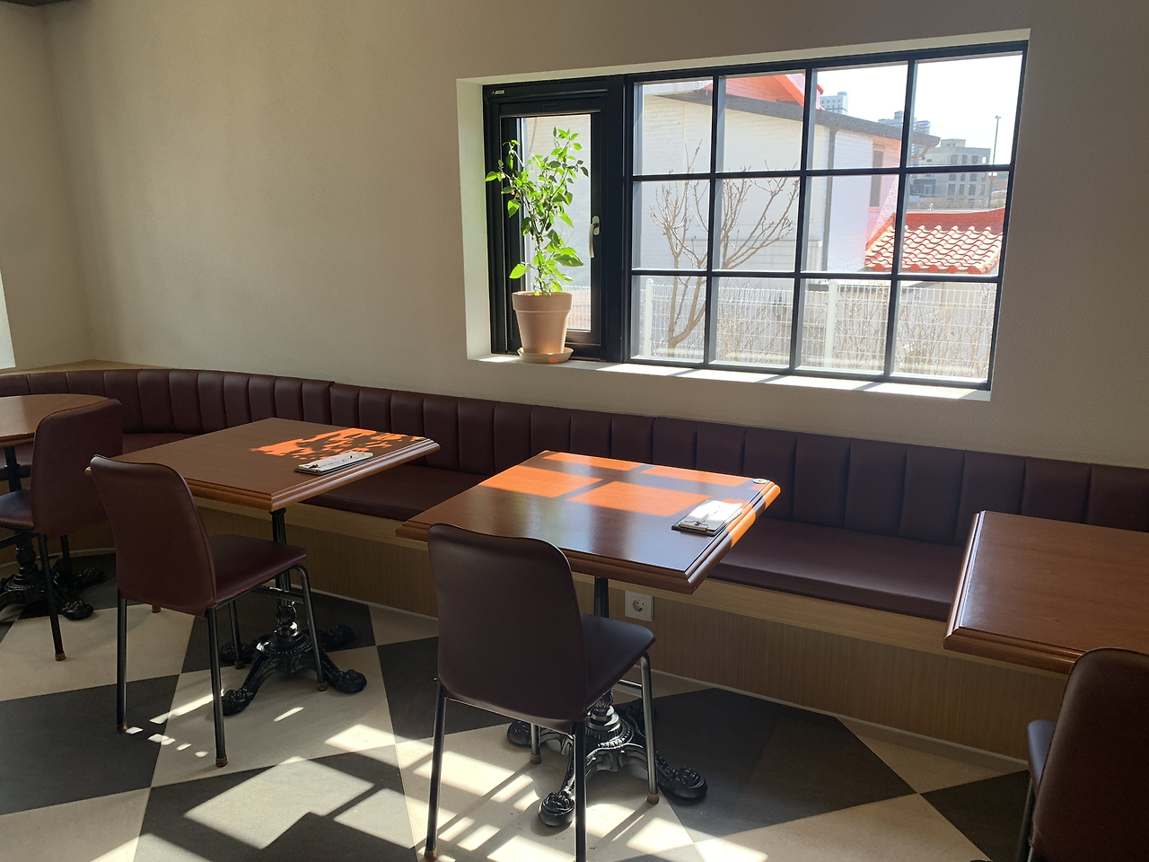 속초의 오래된 서점 중 하나인 동아서점의 2대 사장님이 인터뷰에서 속초에서 좋아하는 식당이라며 소개하신 곳이다. 속초 현지인의 추천이라 늘 가야지 몇 년째 벼르고만 있었는데, 이제야 가봤다. 속초에 워낙 맛있는 먹거리가 많아 늘 선택지에서 밀린 것도 있지만, 라스트 오더가 15:30이라 늘 타이밍 맞추기가 쉽지 않았다. 평점도 높은 편이어서 설레는 마음으로 방문했다. 가정집을 개조한 듯한 완앤송의 첫인상은 굉장히 세련됐다. 통유리로 된 테라스에도 테이블이 있었는데, 날씨가 좀 더 따뜻해지면 식사하기 좋을 듯하다. 매장 곳곳에 창문이 많아 자연광 덕에 따뜻한 느낌이 드는 곳이었다.