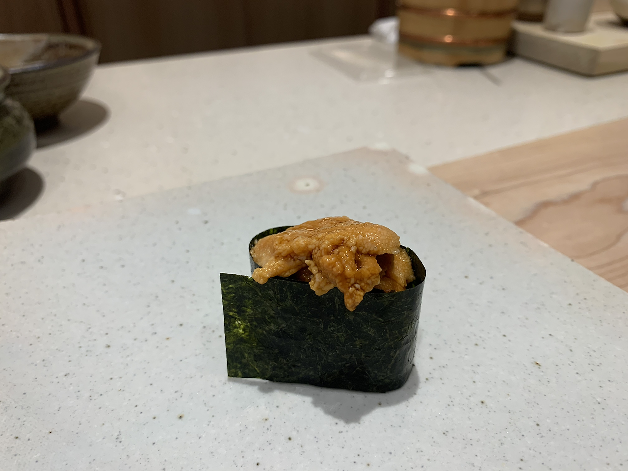 이어서 나온 금태스시, 단새우, 성게알 스시가 나왔다. 단새우는 원래도 최애스시인데 두툼하고 탱글탱글한 단새우가 3피스나 올라가 정말 흐뭇하게 먹었다. 성게알 김말이도 훌륭했다. 부드럽고 크리미 한 바다맛이 느껴졌다.