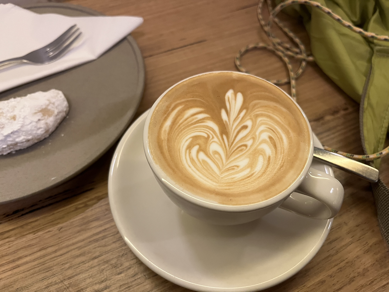 듁스 커피는 멜버른 중심지구의 좁은 골목길에 위치해 있었다. 매장은 굉장히 좁았고, 이미 대부분의 테이블이 가득 차 있었다. 다행히도 바 테이블에 좌석이 나 바로 자리를 잡고 커피를 주문할 수 있었다. 좁은 매장에 비해 손님이 상당히 많았는데, 대부분의 사람들이 원두를 사가거나 커피를 테이크아웃 해갔다. 나는 플랫화이트 한 잔과 쿠람비?(Kourambie)라는 슈가파우더가 잔뜩 묻은 빵을 시켰다. 난 뜨아족인데.. 기분 탓인지, 아님 정말 호주 우유가 맛있어서인지 우유가 들어간 커피인데 참 맛있게 마셨다. 긴 비행 끝에 멜버른에 도착하여 짐을 풀고 나니, 갑자기 비가 쏟아져 마음이 축 처져있었는데, 따뜻한 플랫화이트를 한 잔 마시니 위로받는 기분이었다. 우유의 목 넘김이 참 부드러웠는데, 커피의 고소함과 쌉쌀함 또한 살아있었다. 이 글에서 기록하는 세 개 카페 중에서는 비교적 가장 진했던 플랫화이트로 기억한다.