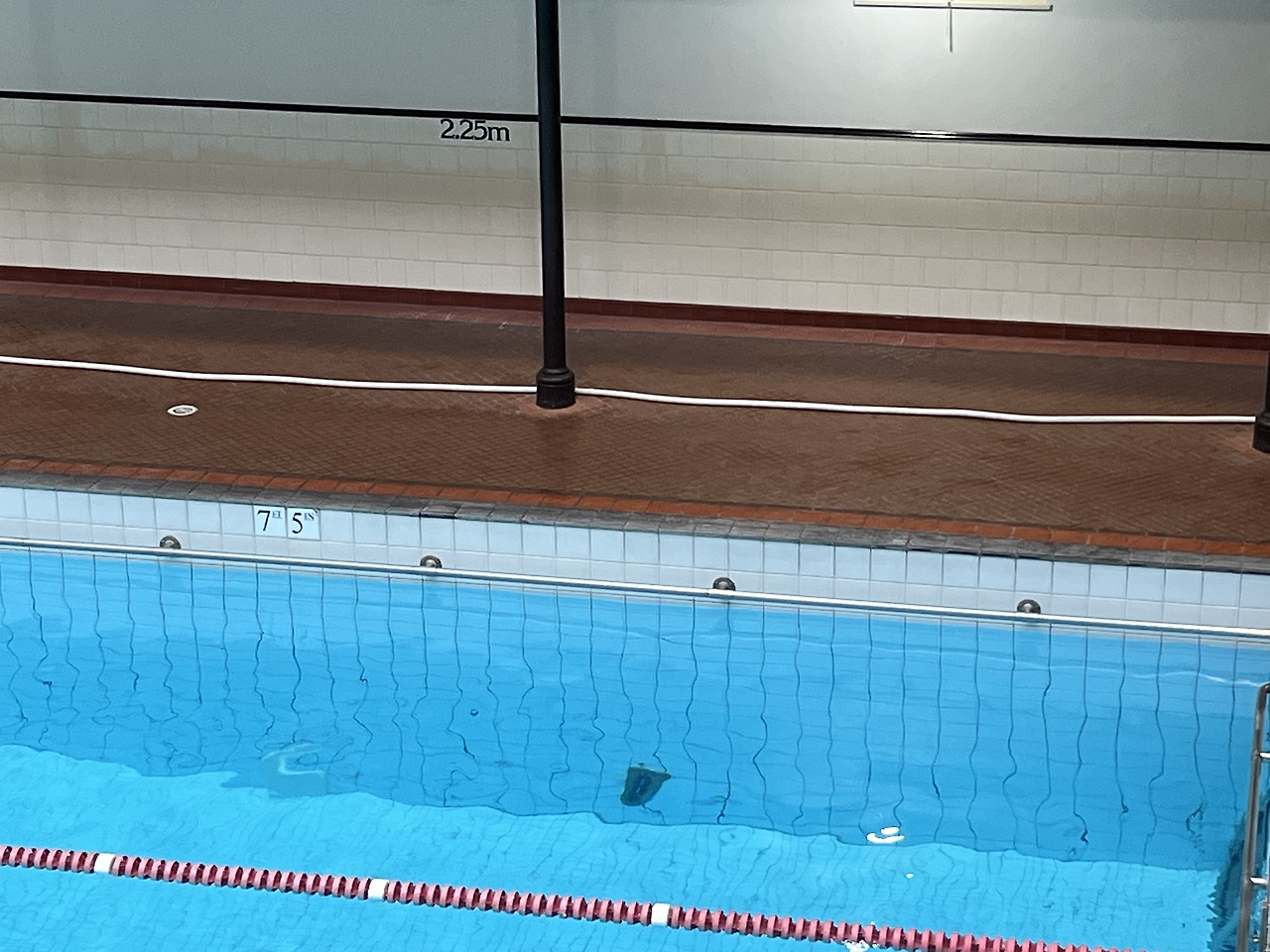 이 날 나는 11시 반쯤 방문을 했는데, 사람이 많이 없어서 혼자 레인을 독차지할 수 있다. 럭키 걸. 며칠 만의 수영이라 잔뜩 기대에 부풀어 입수했는데, 물 온도가 생각보다 높아 당황했다..ㅋㅋ 운동을 하기에는 좀 따뜻한 온도였다. 그래도 일단 출발..! 자유형 2비트로 몸을 풀기 시작했는데, 레인 깊이가 갈수록 깊어져서 당황했다. 출발할 땐 분명 1미터 수심이었는데, 점점 깊어져 도착하니 발이 닿지 않았다. 한쪽은 1미터고, 다른 한쪽은 2.25미터다.