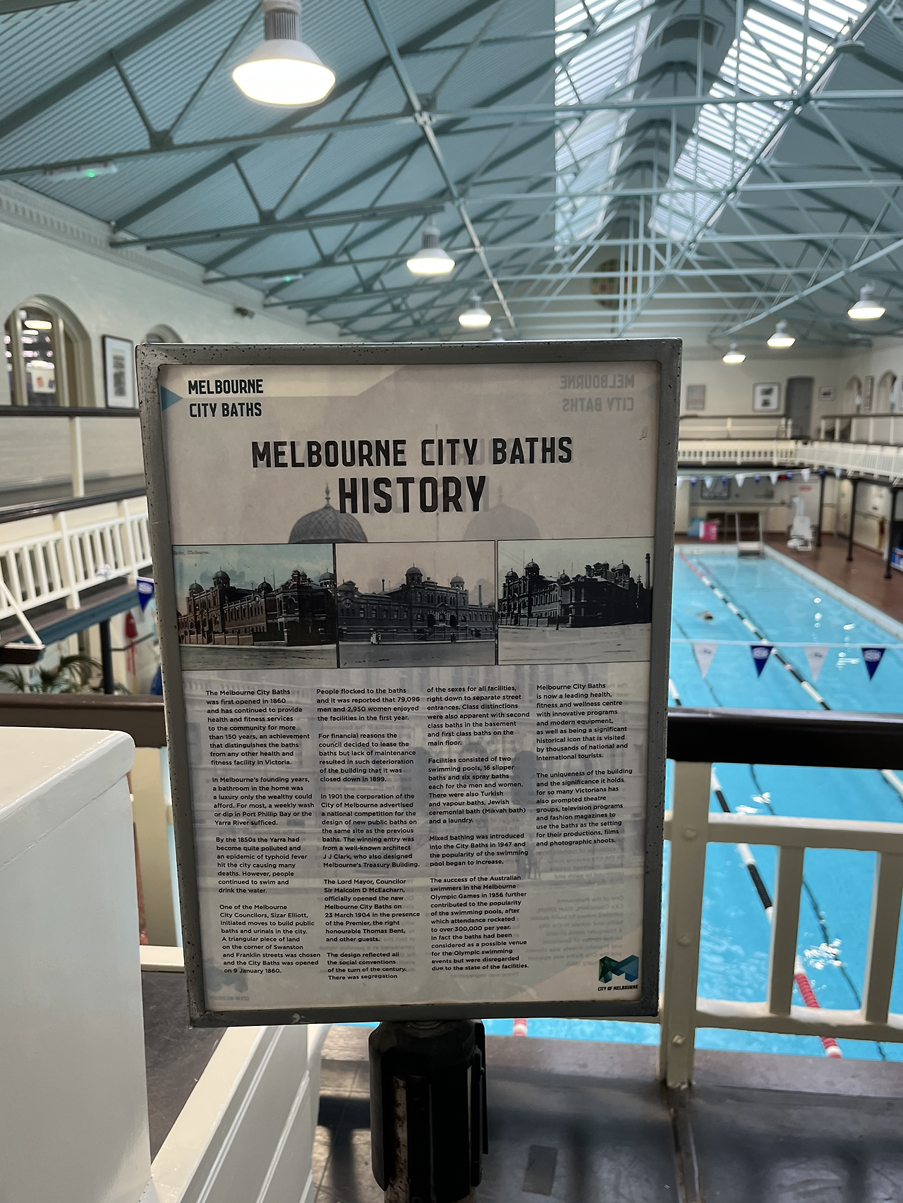학회 기간 동안 머물렀던 숙소에 수영장이 있었지만, 레일도 짧고 본격 수영연습을 위한 풀은 아니었다. 무엇보다 물 온도가 자쿠지 수준이라 몇 바퀴 돌고 나면 숨이 가빠져 불쾌해 몇 번 안 갔다.. 내가 방문한 멜버른 시티배스(Melbourne City Baths)는 1860년에 오픈한 수영장으로, 멜버른 도심에서 가장 큰 수영장이다. 처음 시티배쓰를 검색했을 때 클래식한 외관에 반했는데, 개장 연도를 보고 조금 걱정이 몰려왔다..ㅎㅎ 150년도 더 된 수영장이 컨디션이 어떨지.. 하지만 난 똥인지 된장인지 직접 먹어봐야 하는 성격이라.. 수영도구들을 챙겨 길을 나섰다.