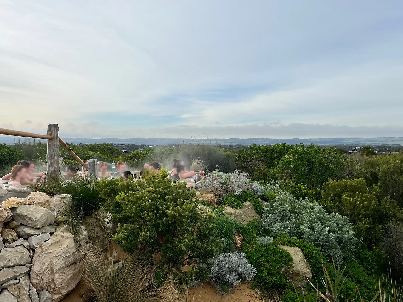 일단 주말은 사람이 정말 많을 것 같아 제외했고(주말 투어 비용이 10불 더 붙기도 한다), 저녁타임은 가격이 할인되어 퇴근 후 많은 사람들이 방문한다고 하여 오전투어로 신청했다. 그런데 눈치게임에 실패한 건지, 원래 사람이 늘 많은 건지 월요일 오전 사람이 상당히 많았다. 뇌피셜을 가동해 보자면 주말에 이어 월요일 연차를 쓴 사람이 있지 않을까. 베스트 타임은 수요일 오전타임이 아닐까 싶다. 하지만 수요일은 이동하는 날이었기 때문에 어차피 안 됐던 일정이다.. 숙소가 멜버른 시내에 있어, 7시 반쯤 픽업차량이 숙소 앞으로 왔다. 숙소가 멜버른 시내가 아니면 아침에 시내로 이동해야 한다는 안내가 있었는데, 같은 투어객 중 사우스뱅크에 머무시는 분이 있었는데, 숙소 앞에서 픽업해 주셨다. 온천욕장에 가는 길목이라 그런 것 같다. 차가 안 밀리면 멜버른 시내에서 온천욕장까지 1시간 반 정도 걸린다. 오고 갈 때, 교통혼잡이 없어 왕복 3시간 정도 걸린 것 같다. 픽업 차량에 올라 멜버른 근교 풍경을 보면 좋았겠지만, 피로를 못 이기고 덜컹이는 차 안에서 한숨 푹 잤다.