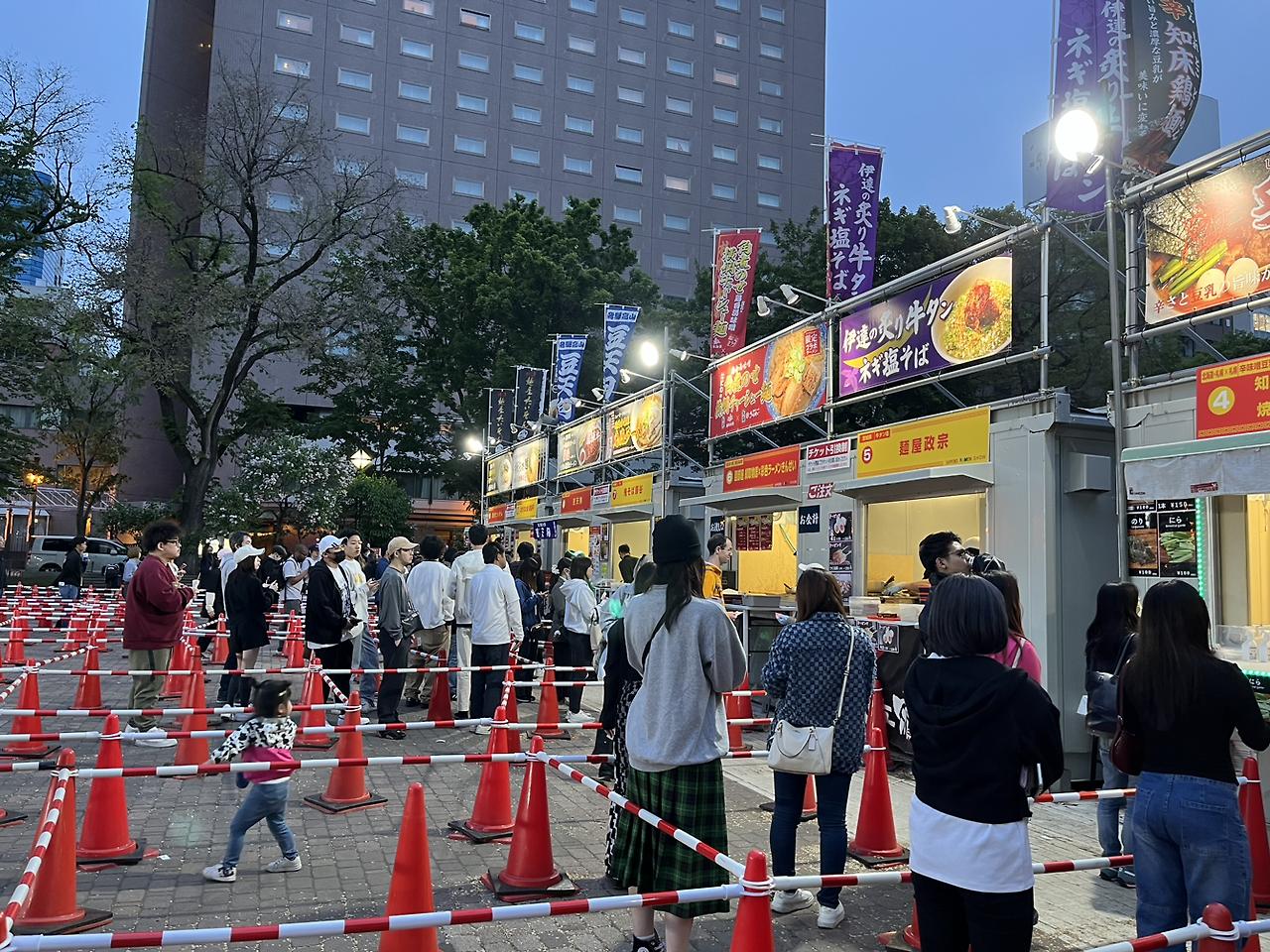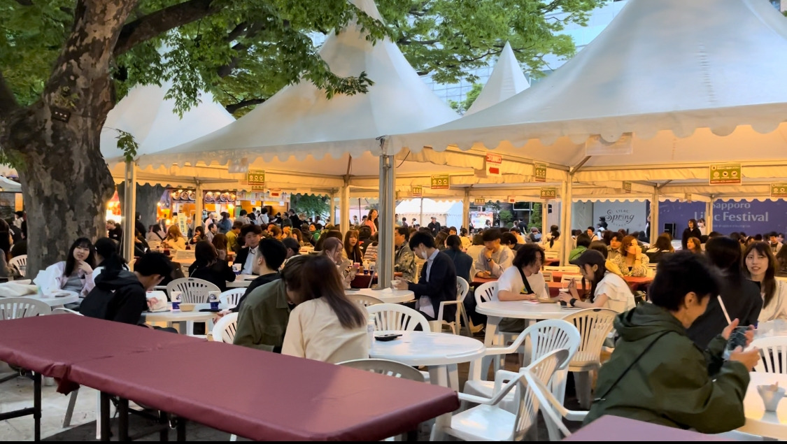 삿포로에 도착하자마자 먹은 첫 끼는 라멘이었다. 내가 도착한 날이 라일락 축제의 마지막 날이어서 운 좋게 라일락 축제의 꽃이라 할 수 있는 라멘을 맛볼 수 있었다. 라일락 축제는 매년 라일락 꽃이 만개하는 5월 중순부터 약 2주 동안 삿포로 오도리 공원에서 열리는데, 라일락 축제의 하이라이트는 라멘쇼다. 전국의 라멘집에서 선별된 이십 개의 라멘 집이 오도리 공원에서 2주 동안 장사를 한다. 라멘 가격은 980엔으로 모두 동일하고, 매표소에서 라멘티켓을 사서 원하는 라멘집 부스로 가서 주문하면 된다. 라멘쇼 세션 옆으로 맥주, 와인, 그 외 다양한 음식들을 파는 부스들도 즐비하다.