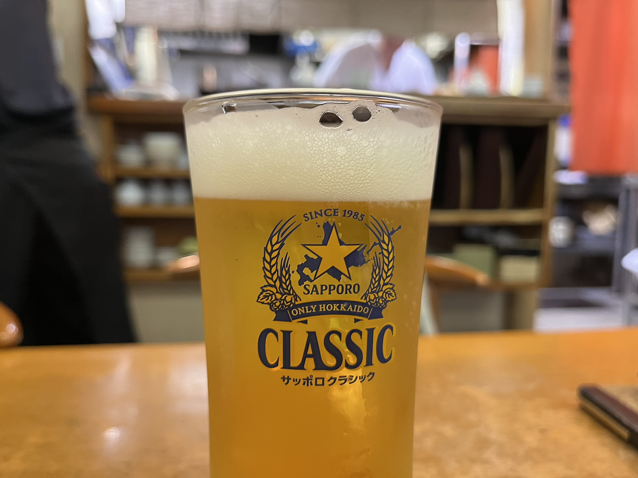 삿포로에서의 마지막 식사는 숙소 근처에 있는 작은 모밀가게에서 했다. 이 집은 기본에 충실한 집이다. 나는 판모밀에 미니 텐동과 타마고 튀김을 시켰다. 메인 요리인 모밀은 기본에 아주 충실한 맛으로 정말 맛있었다. 쯔유소스에 무를 듬뿍 넣고 계란토핑까지 커스텀해서 맛있게 먹었다. 튀김은 생각보다는 눅눅했다. 전에 노보리베츠의 유명한 모밀 집에서도 튀김이 생긴 것과 다르게 좀 눅눅해서 실망한 기억이 있다. 이게 북해도 튀김 스타일인가 싶기도 하다. 그래도 살짝 간이 베어 짭조름한 밥에 튀김을 얹어 먹으니 먹을만했다. 그리고 마지막은 삿포로 클래식 한 잔. 삿포로 클래식은 정말 희한하게 목 넘김이 부드럽다. 조금 오버를 보태자면 마치 구름으로 만든 맥주를 마시는 기분이다. 이 글을 쓰는 지금도 침이 고인다. 조만간 다시 가야겠다. 삿포로 클래식 마시러.