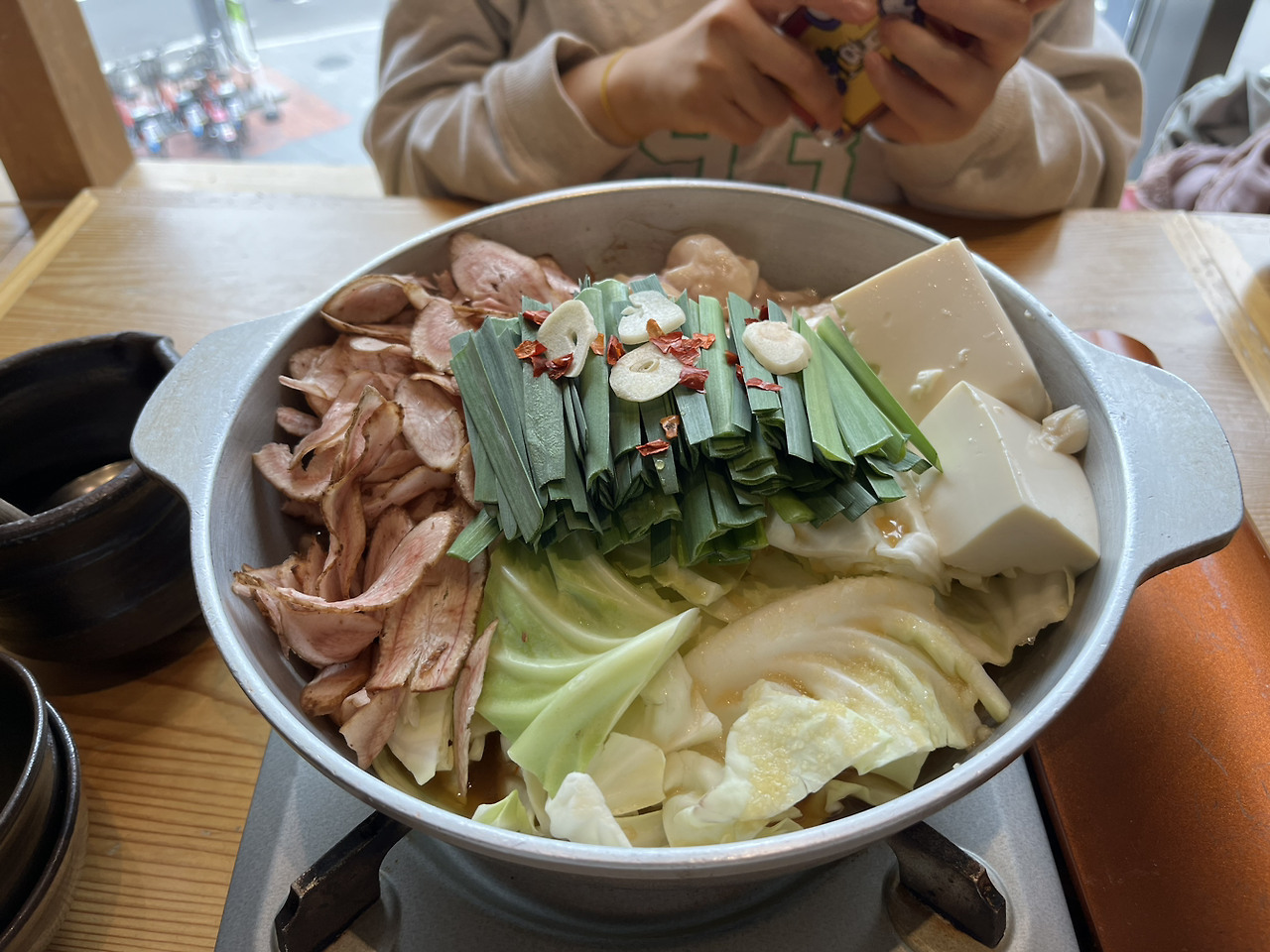 날씨가 예상했던 것보다 추워 국물 요리를 찾아 헤맸다. 그러다 가게 된 곳이 모츠나베 전골집이다. 야마야는 한국에도 체인이 있는 집이지만, 삿포로 시내에서 이자카야를 빼고 나니 갈만한 모츠나베 집이 거의 없었다. 결론적으로는 아는 맛이고, 한국에서도 맛볼 수 있는 맛이지만 맛있었다..ㅋㅋ 오차즈케가 유독 더 맛있게 느껴진 건 기분 탓이겠지. 이 날도 바람이 많이 불어서 오전 내내 바람을 맞으며 돌아다니다 보니 뜨끈뜨끈한 국물이 필요해 야마야로 갔다. 추운 날 삿포로에 갔는데, 담배 냄새나는 이자카야가 싫다거나 점심에 모츠나베를 먹고 싶다면 야마야를 추천한다. 전골 맛이야.. 재료도 신선하고, 나는 워낙 대창러버이기에 쉴 새 없이 행복하게 먹은 기억 밖에 없다. 점심에 오픈런을 했는데, 안 했으면 큰일 날 뻔했다. 앉고 나니 입구에 줄이 쭉 늘어섰다.