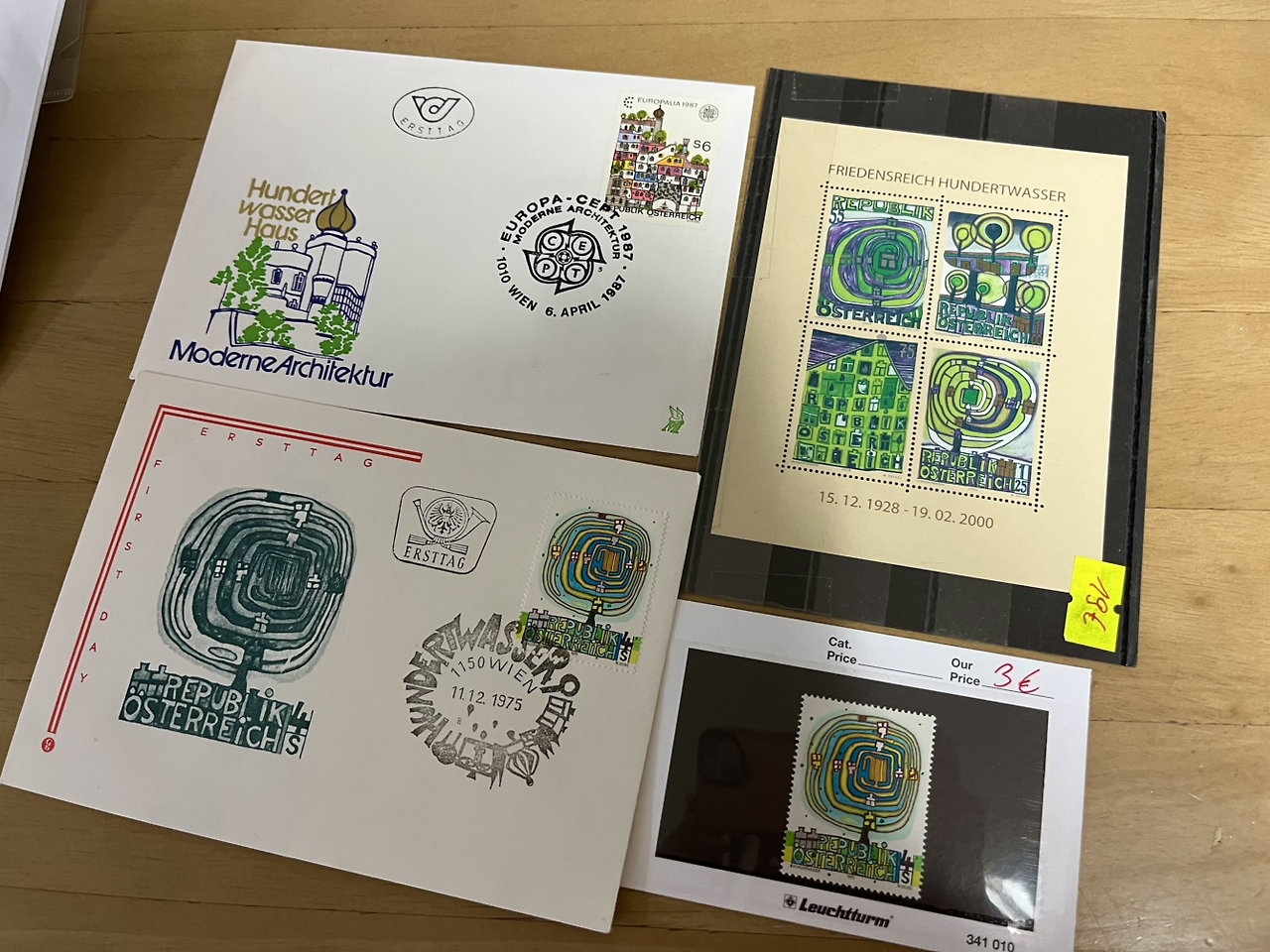 실제로 그는 우표를 디자인하기도 했고, 훈데르트박물관에 전시되어 있다. 우표 수집가로서 가장 흥분되는 순간이었다. 문제는 훈데르트바서 디자인 우표는 생산이 중단돼서 박물관 숍에서 구할 수 없었다. 이대로 포기할 수는 없어서 다음날 시내에 우표를 취급하는 주화 매매상에 갔다. 역사 내 작은 가게 안에 전 세계에서 온 수많은 우표 더미가 산더미처럼 쌓여 있었다. 우표더미 속에서 주인아저씨랑 함께 30분 넘게 훈데르트바서 우표를 찾았다. 결국 훈데르트바서 우표 몇 장을 찾았다. 비록 내가 원하던 풀 컬렉션은 아니었지만, 찾은 게 어딘가 싶다. 그리고 덤으로 에곤 실레 100주년 우표와 동독 시절 발행된 동화 우표도 득템했다. 비엔나 우표 컬렉션은 한국에 돌아와 나만의 작은 박물관에 소중히 전시해 두었다.