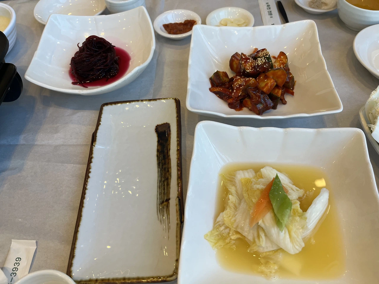 그리고 마지막으로 식사는 돌솥밥 하나와 매생이 떡국을 시켰다. 식사 기본찬으로 가지무침, 애호박나물, 멸치볶음, 김치가 나오는데, 반찬이 정말 다 맛있었다. 보통 전라도 음식은 맛있지만 짠데, 이 집은 전반적으로 간이 슴슴해서 완전 내 취저였다. 두부 송송 된장찌개도 따뜻한 마무리였다. 무엇보다도 매생이 떡국이 참 감동이었다. 떡을 별로 안 좋아하는데, 매생이 가득한 국물만으로도 감동적인 맛이었다..ㅎㅎ 장거리 여행과 결혼식 소셜에 심신이 조금 지쳐있었는데, 큰 위로를 받은 한상이었다.