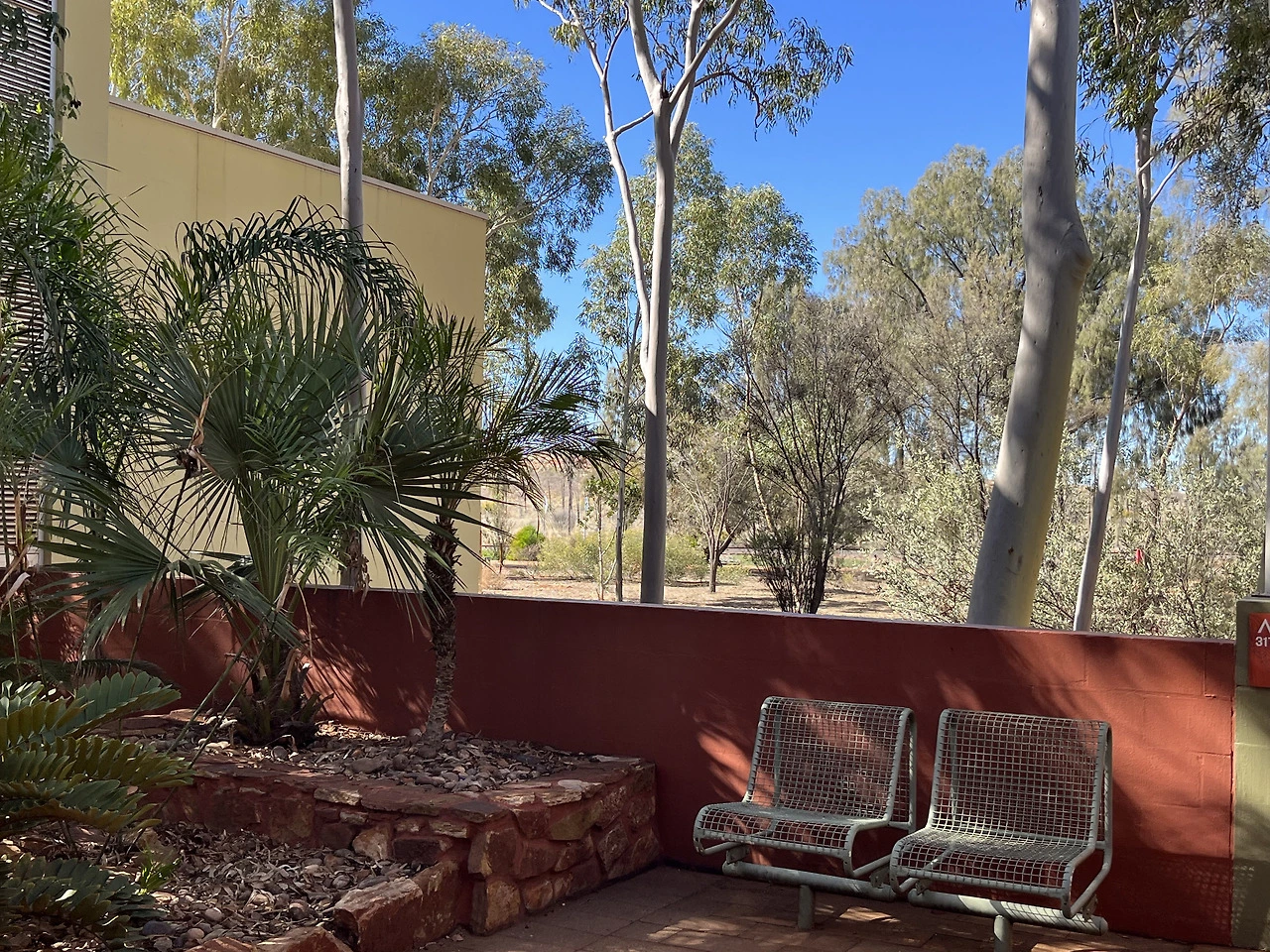 정보가 부족해서 준비단계에서 꽤 애를 먹었는데, 에어즈락 리조트 단지 공식 홈페이지에서 예약을 했다. 에어즈락 리조트 단지 내 몇 개의 숙소들이 있는데, 나는 데저트 가든스 호텔(Desert Gardens Hotel)로 예약했다. 내 기준 꽤 미리 예약했다고 생각했는데, 간신히 방을 구했다. 대부분의 숙소가 이미 풀북 상태였고, 남은 선택지는 내가 묵은 호텔과 아웃백 호텔&롯지라는 도미토리형 호텔뿐이었다. 두 숙소의 가격 차이가 컸는데, 아웃백 호텔 후기가 좋지 않아 고민하던 찰나 그마저도 모두 매진되어, 고민할 것 없이 데저트 가든 호텔의 가든뷰 방으로 예약했다. 울루루뷰 방을 예약 못한 게 내심 아쉬웠는데, 정원 너머로 울루루가 빼꼼 보이는 것만으로도 충분히 감동적이었다.