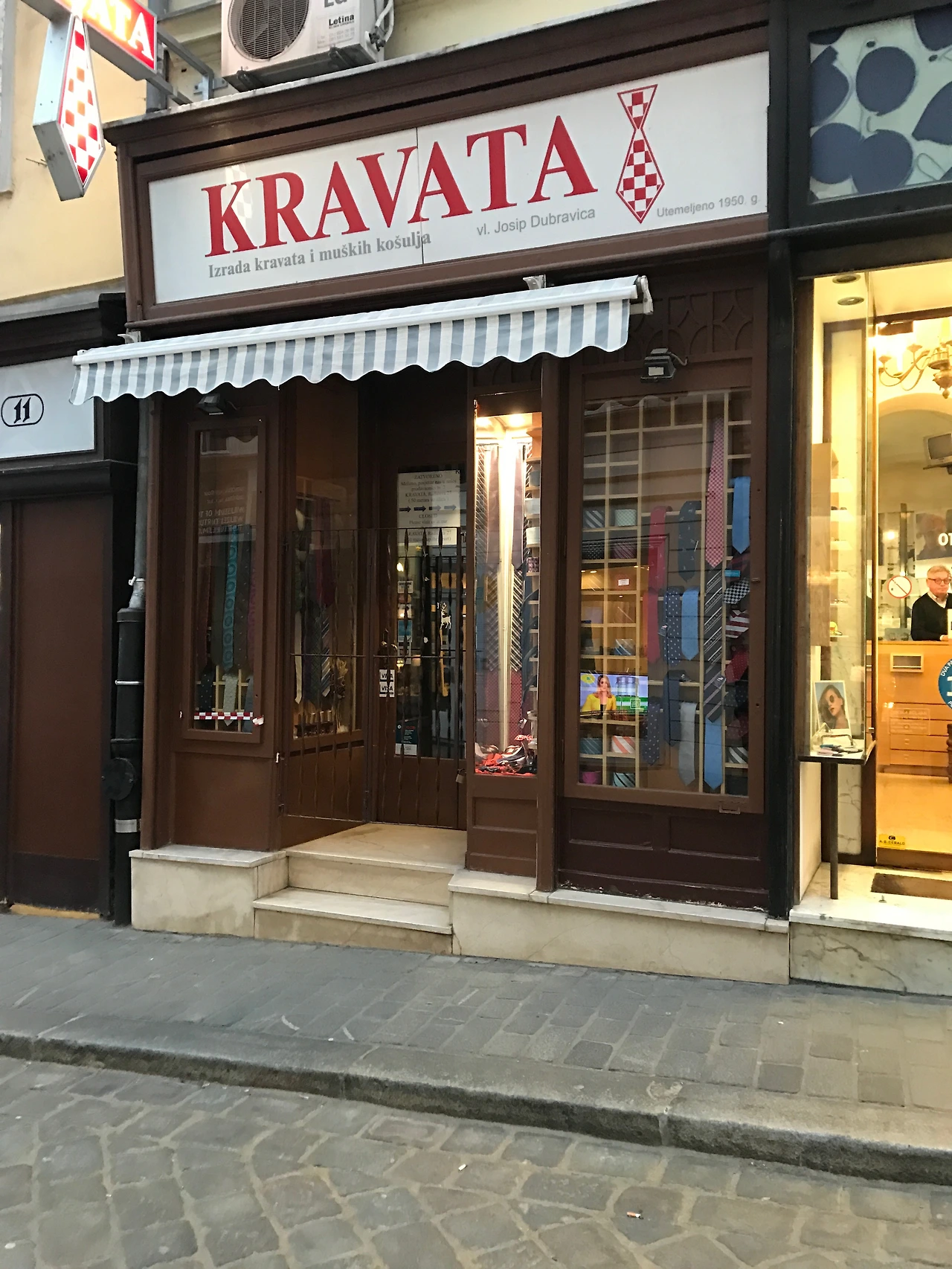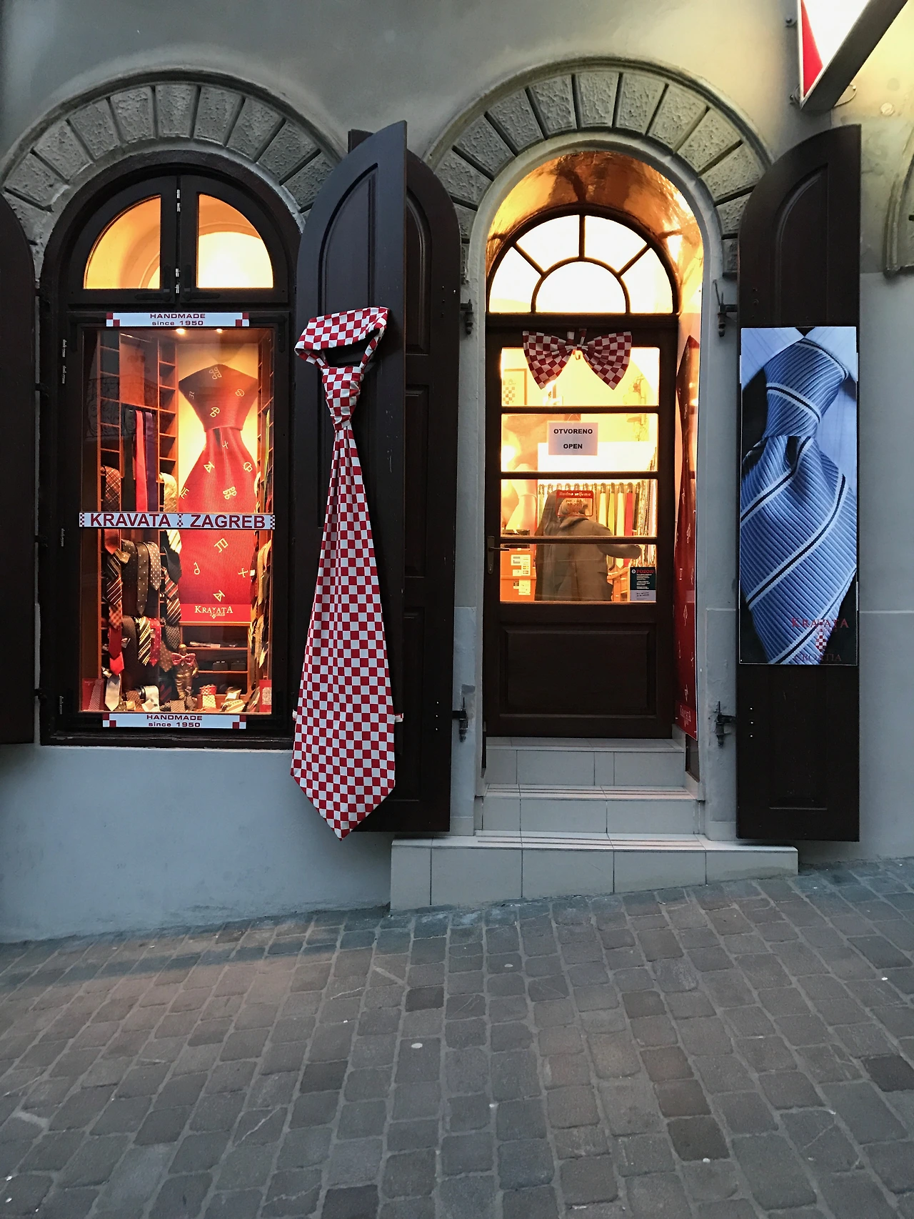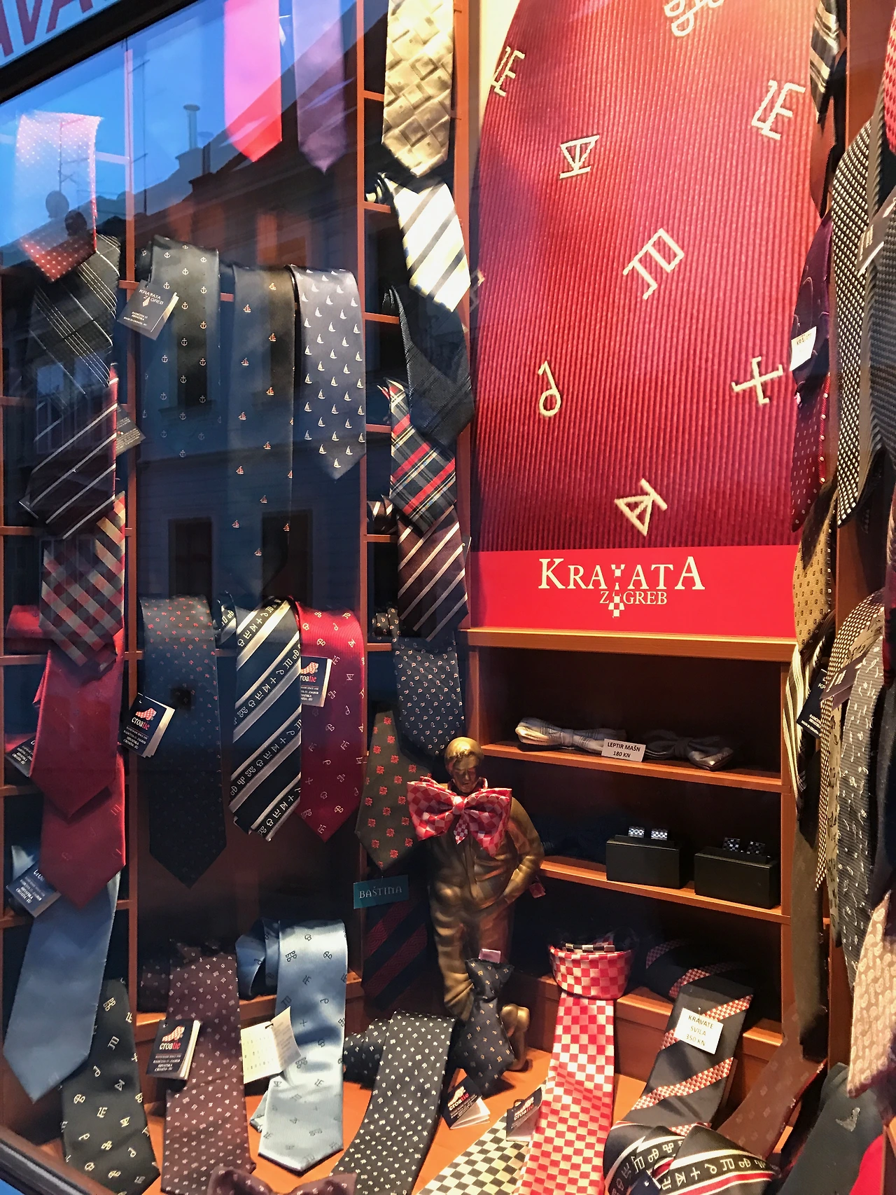 넥타이의 원조국가라니. 도착해서야 알았다. 크로아티아의 어원인 Cravata를 딴 넥타이 브랜드도 있고 거대 넥타이를 조형물 삼아 간판으로 건 곳이 눈에 띄었다. 나폴레옹 시대 크로아티아에서 착출한 남자들이 목에 스카프를 두르고 있었는데 이를 보고 프랑스에서도 멋있다고 생각해 따라 매기 시작했는데 지금의 넥타이 원조이다. 스카프 형식이 차츰 변해 넓은 면적에서 점점 좁은 면적으로 세련되게 변했다고 한다.