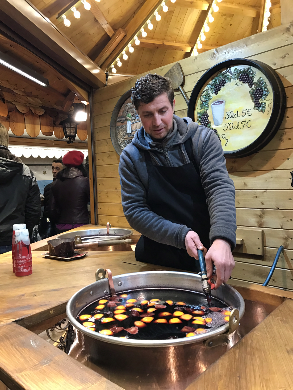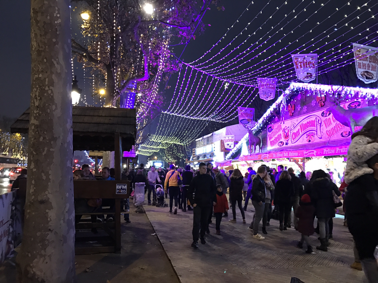 정말? 진짜? 레드 와인을 끓여 마신다니! 혹독한 바람과 찬 기운에도 불구하고 샹젤리제 거리는 한 달 동안 빛을 낸다. 샹젤리제 거리 양쪽에는 수많은 전구 천막이 드리워져 있고 플리마켓은 필요 없을 정도로 양쪽 거리에는 빼곡히 크리스마스 마켓 속 상점들이 입주해 있다. 밤이면 더 활성화되는 거리가 바로 이곳이다.