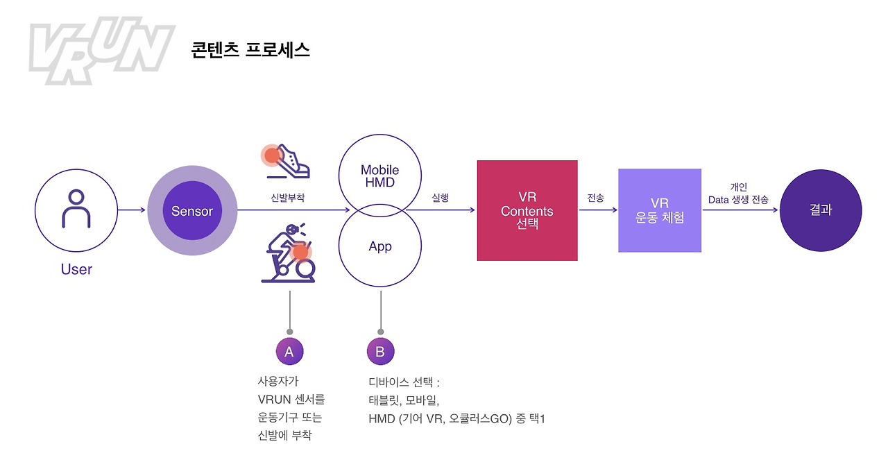제안 당시 그럴싸한 네이밍이 필요해 ‘VR + Running’을 합성해 ‘브런 VRUN’을 도출해냈고, 브룽 브룽 달린다는 의성어와도 잘 맞아떨어져 바로 정하게 됐다. 로고 역시 달리는 역동적인 느낌과 스포티한 느낌을 살리도록 노력한 결과다. 여기에도 IoT 센서가 부착되는데 신발 또는 자전거에 부착하면 걷거나 바퀴를 돌리는 것을 인식해 운동 기록을 남기는 원리다.