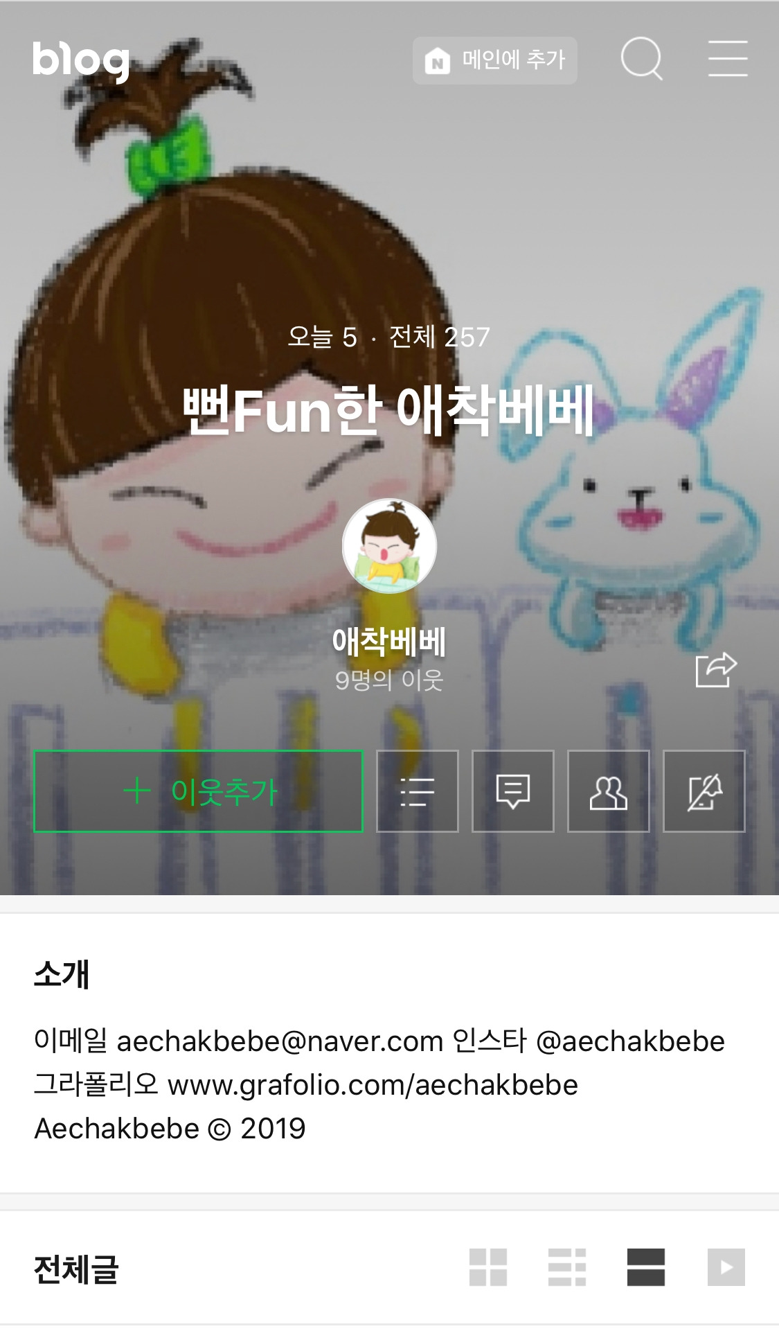 글을 잘 못 쓸 때는 그림을 그려 인스타그램을 먼저 시작했고, 블로그와 브런치에는 그림과 함께 베베와 일상의 이야기를 하는 것으로 컨셉으로 잡았다.