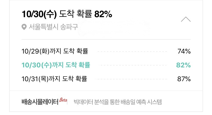 10/30(수) 도착 확률 89%