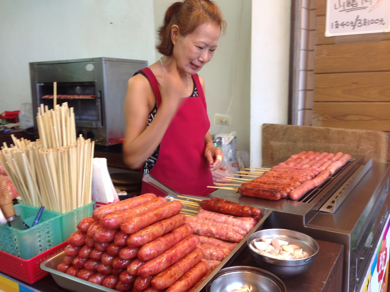난 사실 쏘세지를 못 먹는다. 그래서 항상 고기 맛을 봐줄 친구가 필요하다. 멧돼지 쏘세지는 육질이 다르다나. 나의 경우는 소라구이를 택해서 먹곤 했는데 이것 말고도 먹을 것이 많으니 처음 시작부터 많이 먹으면 안 된다. 친구들과 갈 때마다 1인분만 주문해 반씩 나눠먹는 걸로 하면 지우펀 시장에 있는 음식을 한 번씩 맛볼 수 있다. 꼭 그렇게 까지 먹어야 하나? 그렇다. 지우펀이나 대만에서 먹는 어묵의 맛은 정말 우리나라 부산 어묵과는 또 다른 느낌이고, 어묵 안에도 각종 재료마다 다른 맛이 난다. 입맛에 맛는 것도 있고 독특한 향이 나는 것도 있다. 뭐 어떤가. 한 번의 기회가 왔을 때 맛보는 게 여행의 묘미가 아니겠는가.